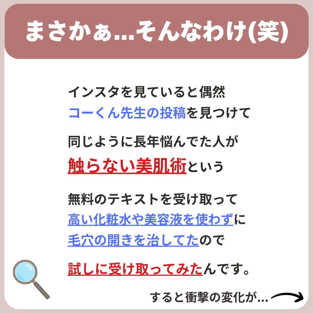 あなたの毛穴の開きが治らない 原因を突き止めて正しいスキンケアをしてもらいたいと思い 無料で触らない美肌術をプレゼントしています🎁 プレゼントの受け取りはプロフィールのリンクからお願いします🥰🥰✨✨