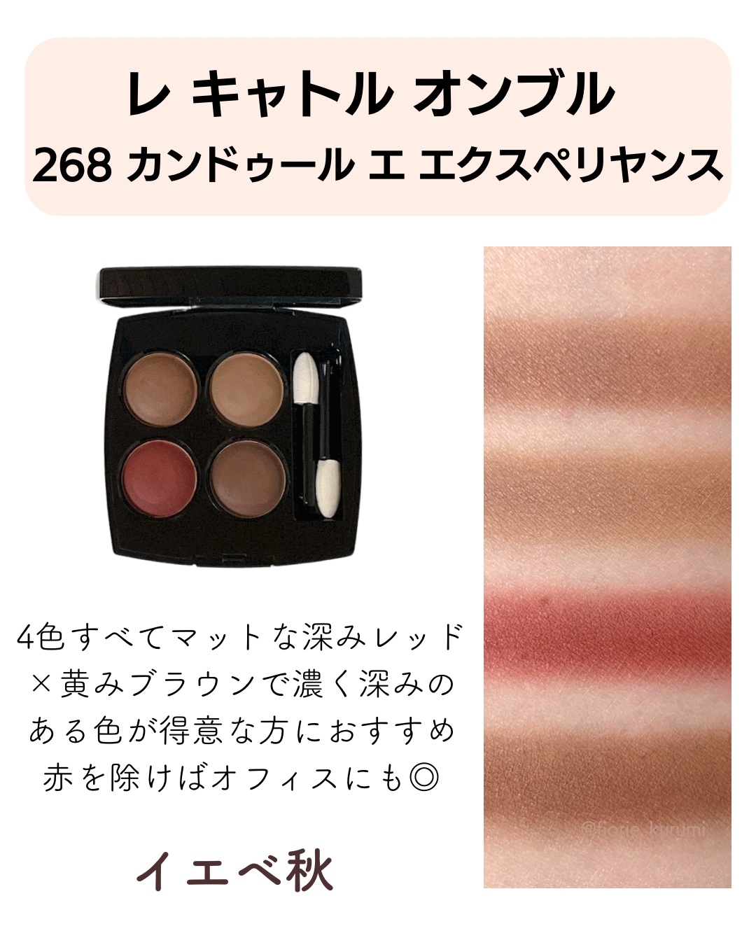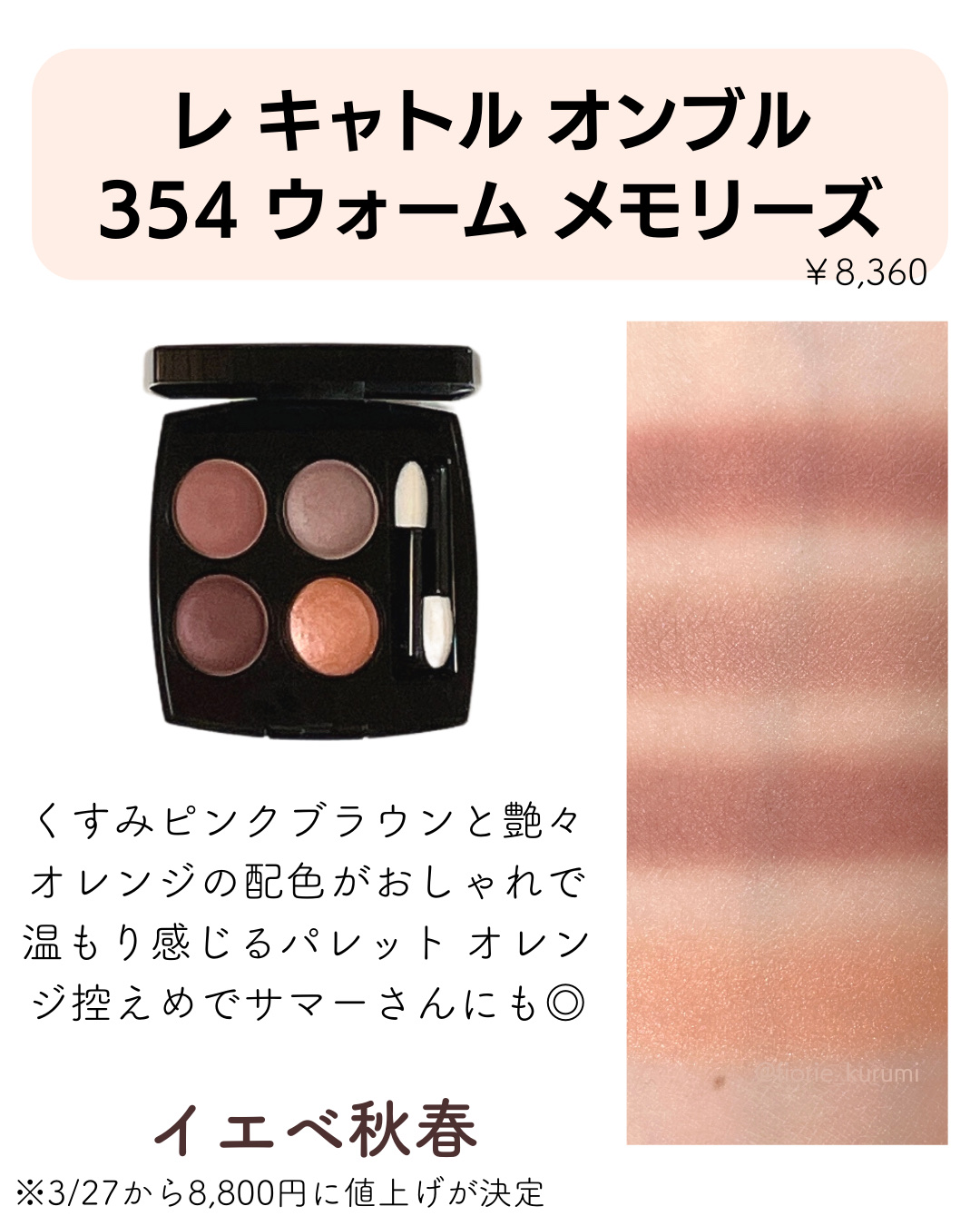 この秋はCHANELで大人の目元をアップデート✨イエベ・ブルベ別におすすめのアイシャドウをまとめました。👒イエベさんにおすすめ354ウォームメモリー→くすみピンクとオレンジのお洒落配色パレット。一見難しそうに見えますが、肌に乗せると意外に馴染...