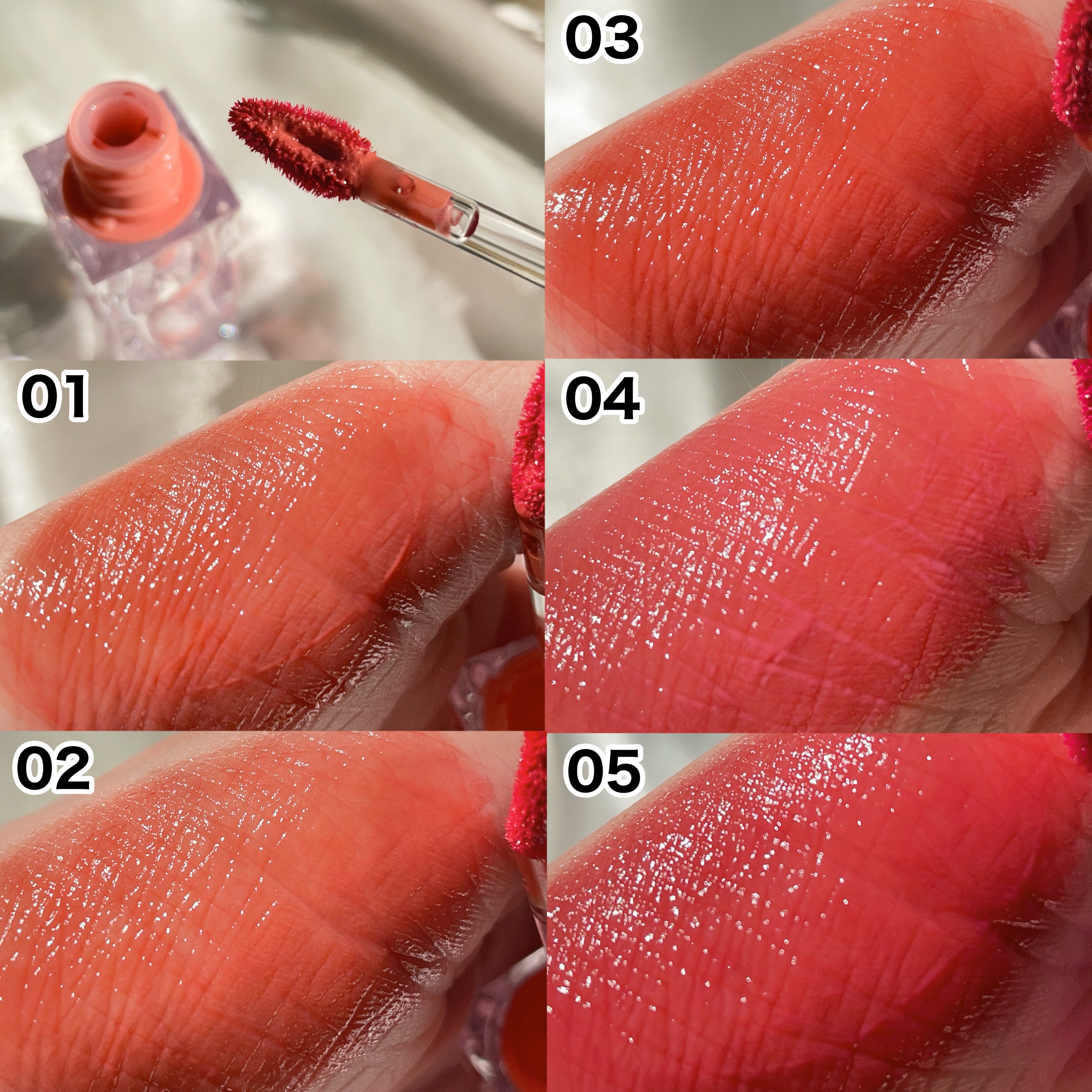 - <01. ピーチアンバー> 水、リンゴ酸ジイソステアリル、ビスジグリセリルポリアシルアジペート-2、ジフェニルシロキシフェニルトリメチコン、ジフェニルジメチコン、水添ポリイソブテン、BG、グリセリン、1,2-ヘキサンジオール、セテアレス-20、セテアリルアルコール、セチルPEG/PPG-10/1ジメチコン、(アクリル酸ヒドロキシエチル/アクリロイルジメチルタウリンNa)コポリマー、ポリソルベート60、フェノキシエタノール、スクワラン、香料、エチルヘキシルグリセリン、EDTA-2Na、イソステアリン酸ソルビタン、水酸化Al、ポリアクリル酸アンモニウム、ホホバ種子油、月見草油、アボカド油、モモ果実エキス、ステアリン酸Na、クエン酸、テトラ(ジ-t-ブチルヒドロキシヒドロケイヒ酸)ペンタエリスリチル、クダモノトケイソウ果実エキス、ヤエヤマアオキ果実エキス、ミルシアリアデュビア果実エキス、アンマロク果実エキス、ヒポファエラムノイデス果実エキス、テルミナリアフェルジナンジアナ果実エキス、酸化チタン、黄5、赤227、赤104(1)、黄4、青1 <02.アプリコットサイダー> 水、リンゴ酸ジイソステアリル、ビスジグリセリルポリアシルアジペート-2、ジフェニルシロキシフェニルトリメチコン、水添ポリイソブテン、ジフェニルジメチコン、BG、グリセリン、1,2-ヘキサンジオール、セテアレス-20、セテアリルアルコール、セチルPEG/PPG-10/1ジメチコン、(アクリル酸ヒドロキシエチル/アクリロイルジメチルタウリンNa)コポリマー、ポリソルベート60、フェノキシエタノール、スクワラン、香料、エチルヘキシルグリセリン、EDTA-2Na、イソステアリン酸ソルビタン、アボカド油、ホホバ種子油、月見草油、モモ果実エキス、ステアリン酸Na、クエン酸、テトラ(ジ-t-ブチルヒドロキシヒドロケイヒ酸)ペンタエリスリチル、アンマロク果実エキス、クダモノトケイソウ果実エキス、ヒポファエラムノイデス果実エキス、テルミナリアフェルジナンジアナ果実エキス、ヤエヤマアオキ果実エキス、ミルシアリアデュビア果実エキス、酸化チタン、黄5、赤227、赤104(1)、青1 <03.モロッコホリデーズ> 水、リンゴ酸ジイソステアリル、ビスジグリセリルポリアシルアジペート-2、ジフェニルシロキシフェニルトリメチコン、ジフェニルジメチコン、水添ポリイソブテン、BG、グリセリン、1,2-ヘキサンジオール、セテアレス-20、セテアリルアルコール、セチルPEG/PPG-10/1ジメチコン、(アクリル酸ヒドロキシエチル/アクリロイルジメチルタウリンNa)コポリマー、ポリソルベート60、フェノキシエタノール、スクワラン、香料、エチルヘキシルグリセリン、EDTA-2Na、イソステアリン酸ソルビタン、水酸化Al、ポリアクリル酸アンモニウム、ホホバ種子油、月見草油、アボカド油、モモ果実エキス、ステアリン酸Na、クエン酸、テトラ(ジ-t-ブチルヒドロキシヒドロケイヒ酸)ペンタエリスリチル、クダモノトケイソウ果実エキス、ヤエヤマアオキ果実エキス、ミルシアリアデュビア果実エキス、アンマロク果実エキス、ヒポファエラムノイデス果実エキス、テルミナリアフェルジナンジアナ果実エキス、酸化チタン、黄5、赤227、赤104(1)、青1、黄4 <04. リトルモーブ> 水、リンゴ酸ジイソステアリル、ビスジグリセリルポリアシルアジペート-2、ジフェニルシロキシフェニルトリメチコン、ジフェニルジメチコン、水添ポリイソブテン、BG、グリセリン、1,2-ヘキサンジオール、セテアレス-20、セテアリルアルコール、セチルPEG/PPG-10/1ジメチコン、(アクリル酸ヒドロキシエチル/アクリロイルジメチルタウリンNa)コポリマー、ポリソルベート60、フェノキシエタノール、スクワラン、香料、エチルヘキシルグリセリン、EDTA-2Na、イソステアリン酸ソルビタン、水酸化Al、ポリアクリル酸アンモニウム、ホホバ種子油、月見草油、アボカド油、モモ果実エキス、ステアリン酸Na、クエン酸、テトラ(ジ-t-ブチルヒドロキシヒドロケイヒ酸)ペンタエリスリチル、クダモノトケイソウ果実エキス、ヤエヤマアオキ果実エキス、ミルシアリアデュビア果実エキス、アンマロク果実エキス、ヒポファエラムノイデス果実エキス、テルミナリアフェルジナンジアナ果実エキス、酸化チタン、赤227、赤104(1)、黄5、黄4、青1 <05.ローズティー> 水、リンゴ酸ジイソステアリル、ビスジグリセリルポリアシルアジペート-2、ジフェニルシロキシフェニルトリメチコン、ジフェニルジメチコン、水添ポリイソブテン、BG、グリセリン、1,2-ヘキサンジオール、セテアレス-20、セテアリルアルコール、セチルPEG/PPG-10/1ジメチコン、(アクリル酸ヒドロキシエチル/アクリロイルジメチルタウリンNa)コポリマー、ポリソルベート60、フェノキシエタノール、スクワラン、香料、エチルヘキシルグリセリン、EDTA-2Na、イソステアリン酸ソルビタン、水酸化Al、ポリアクリル酸アンモニウム、ホホバ種子油、月見草油、アボカド油、モモ果実エキス、ステアリン酸Na、クエン酸、テトラ(ジ-t-ブチルヒドロキシヒドロケイヒ