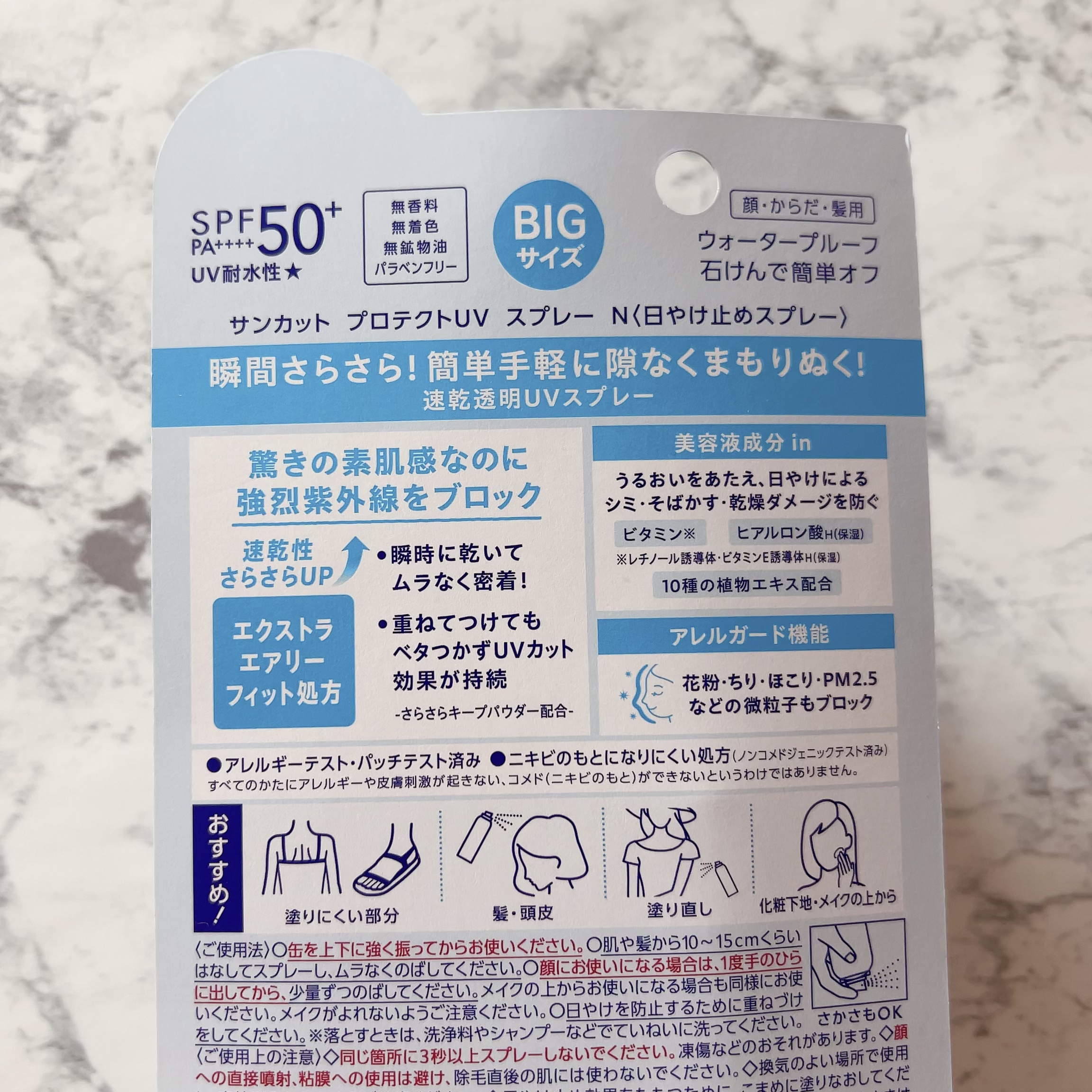 - リニューアル発売 【SPF50+ PA++++耐水性★】 日やけ止めスプレー累計売上第1位*。 瞬さら!簡単手軽に隙なくまもりぬく、速乾透明UVスプレー。 肌にしっかり密着し、花粉・ちり・ほこり・PM2.5などの環境ストレスからもまもります。 *日やけ止めスプレー累計売上第1位 インテージSRI日やけ止めスプレー(セルフ・薬系)市場2020年6月~2023年5月の累計販売金額