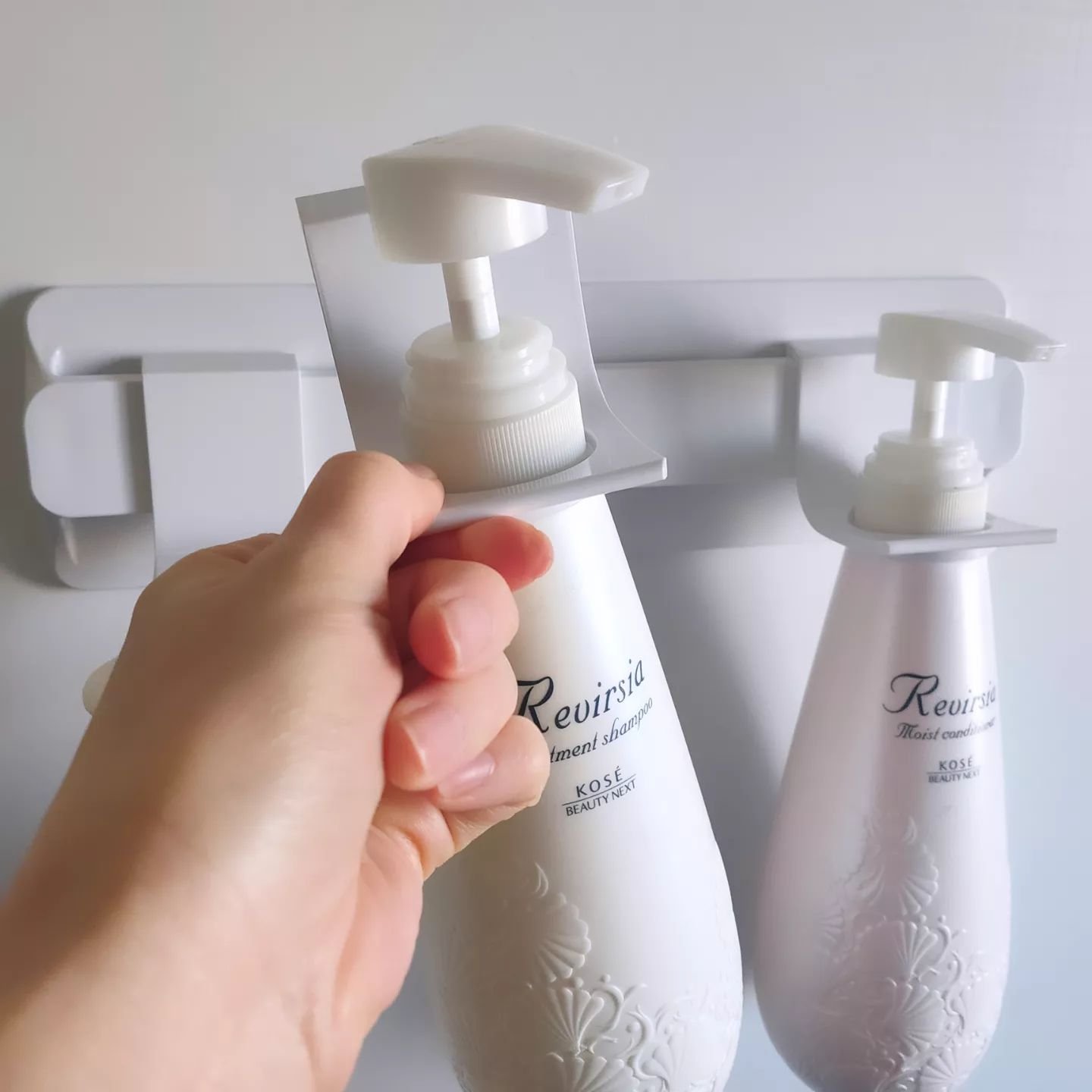 壁につけて浮かせてシャンプーなどを収納できる優れもの! 「どこでも浮かせる」×「自由にカスタマイズ」という今までにない新しいシステム。 下に置くとどうしてもぬれやすいし、底がヌメヌメが気になってたので、 これに収納すればヌメヌメしないし、風呂掃除も楽になるし、 ホルダーもいろいろあるから自部の好きなものでカスタマイズもできるよ👍 これは何個か欲しいな。