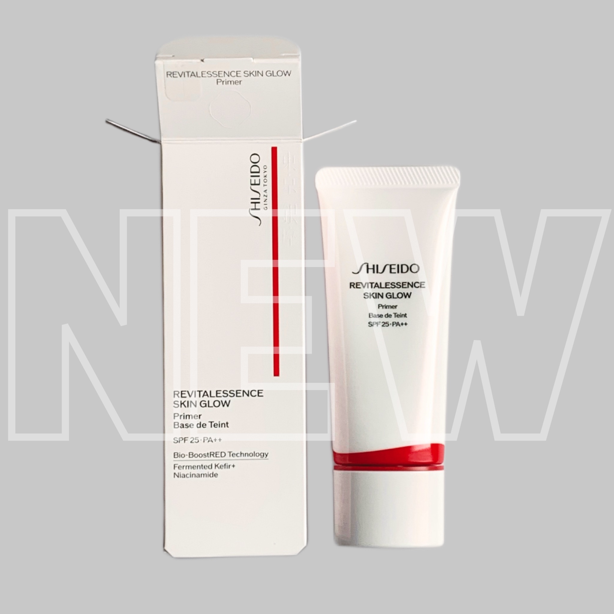 - 2)SHISEIDOエッセンス スキングロウ プライマー エッセンス スキングロウ シリーズから美容液下地、登場。 化粧下地から美容液レベルの新体験。美肌に導くファンデーションと同じ美容成分、ナイアシンアミド*1・ケフィア発酵エキスGL*2を配合。つけた瞬間からうるおいを角質層まで届け、自然なカバー効果とつややかな仕上がりが続きます。 *1 うるおい保護成分 *2 保湿成分:乳酸桿菌/コメ発酵物、グリセリン