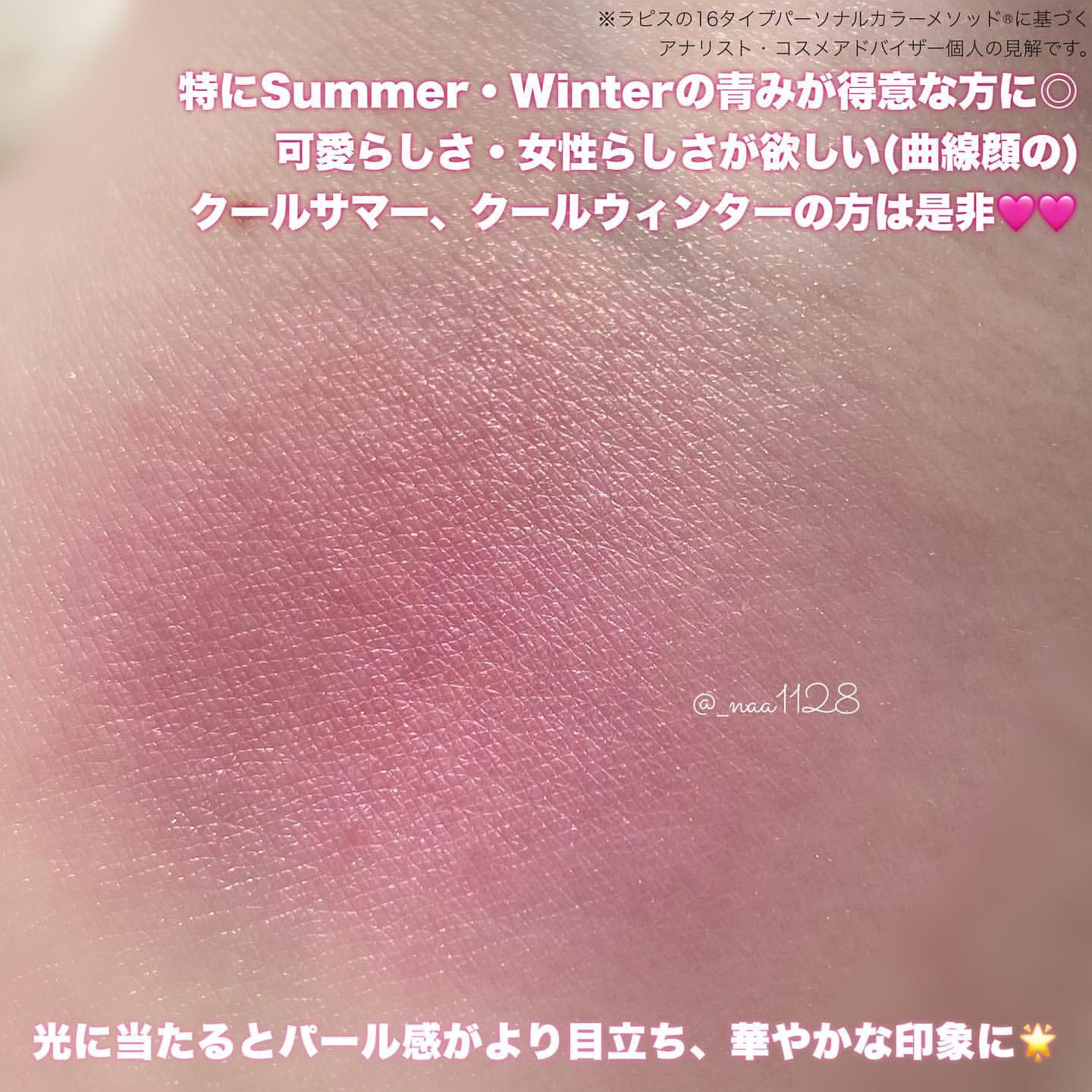 | 細かいラメ入りでツヤっぽい仕上りに。チーク以外にもアイメイクに使えるパウダーチークスです。 | 詳細を見る |