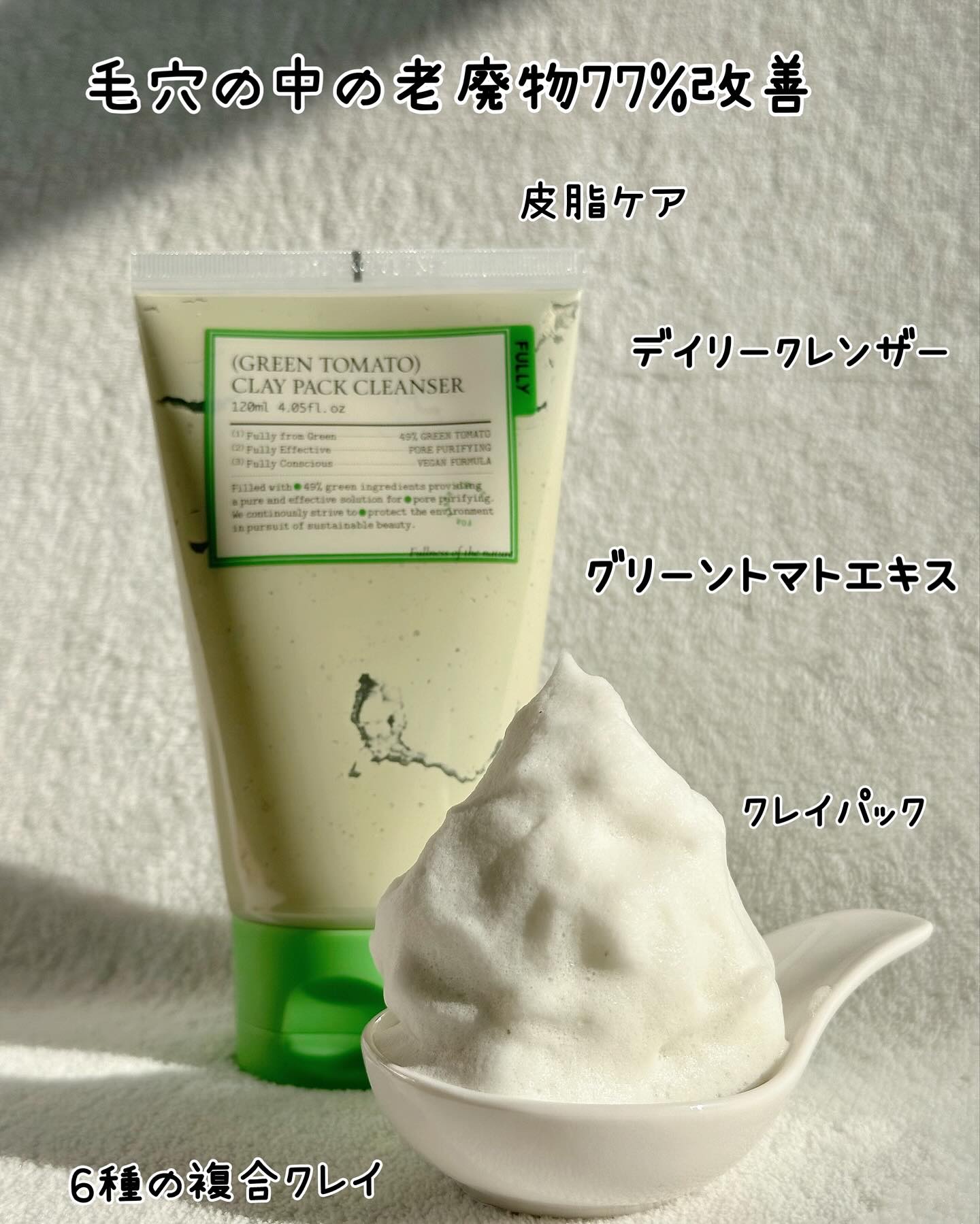 [提供]@fully_japan韓国で人気の洗顔・スキンケアブランド、FULLY💚グリーントマトクレンザーはクレイパックと洗顔が同時にできる2in1🫧💚生クリームのようなテクスチャで毛穴の皮脂や汚れをしっかり除去、つるんとした肌に泡立てるとた...