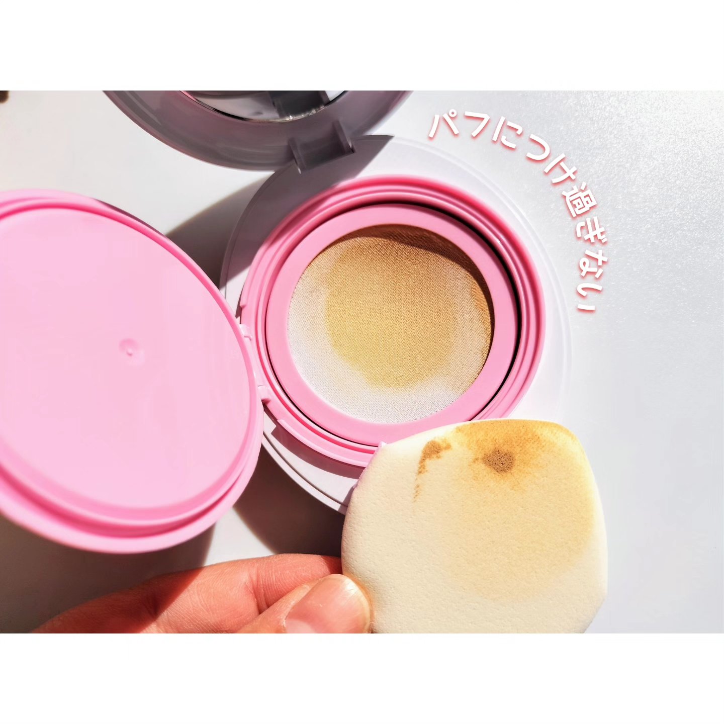 こちらはUVケアも◎ セッティングも簡単に装着できます😁 このブラック色したシンプルデザインの容器も素敵ですよね♡ パフにトントン馴染ませて肌にのせて みると少ししか取っていないのに、つきがよいですね。みずみずしいテクスチャです。 トントンなじませて伸ばしていくと 厚塗り感を感じさせない使用感です。 パフには、ほんの少しつけて内側から外にかけてポンポンと伸ばしていくのが ポイント。 つい、クッションファンデはたっぷりに なっちゃうけどほんの少しで良い◎ そうするとむらなく均一に肌にのせる ことができるね🥺