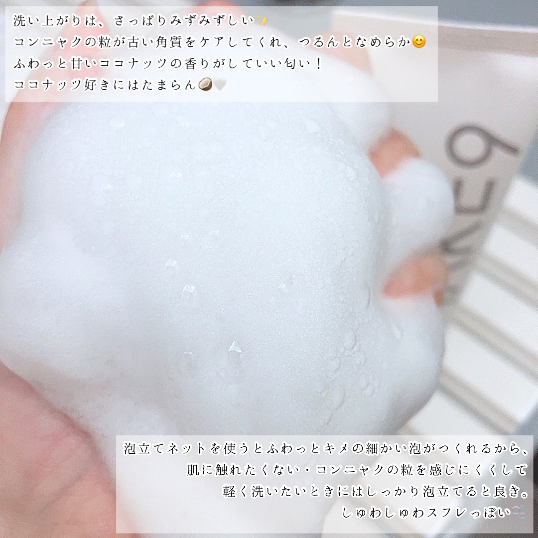 - こんにゃく粒が肌にくっつき、毛穴に詰まった皮脂や汚れ残りを取り除くクレンジング洗顔料