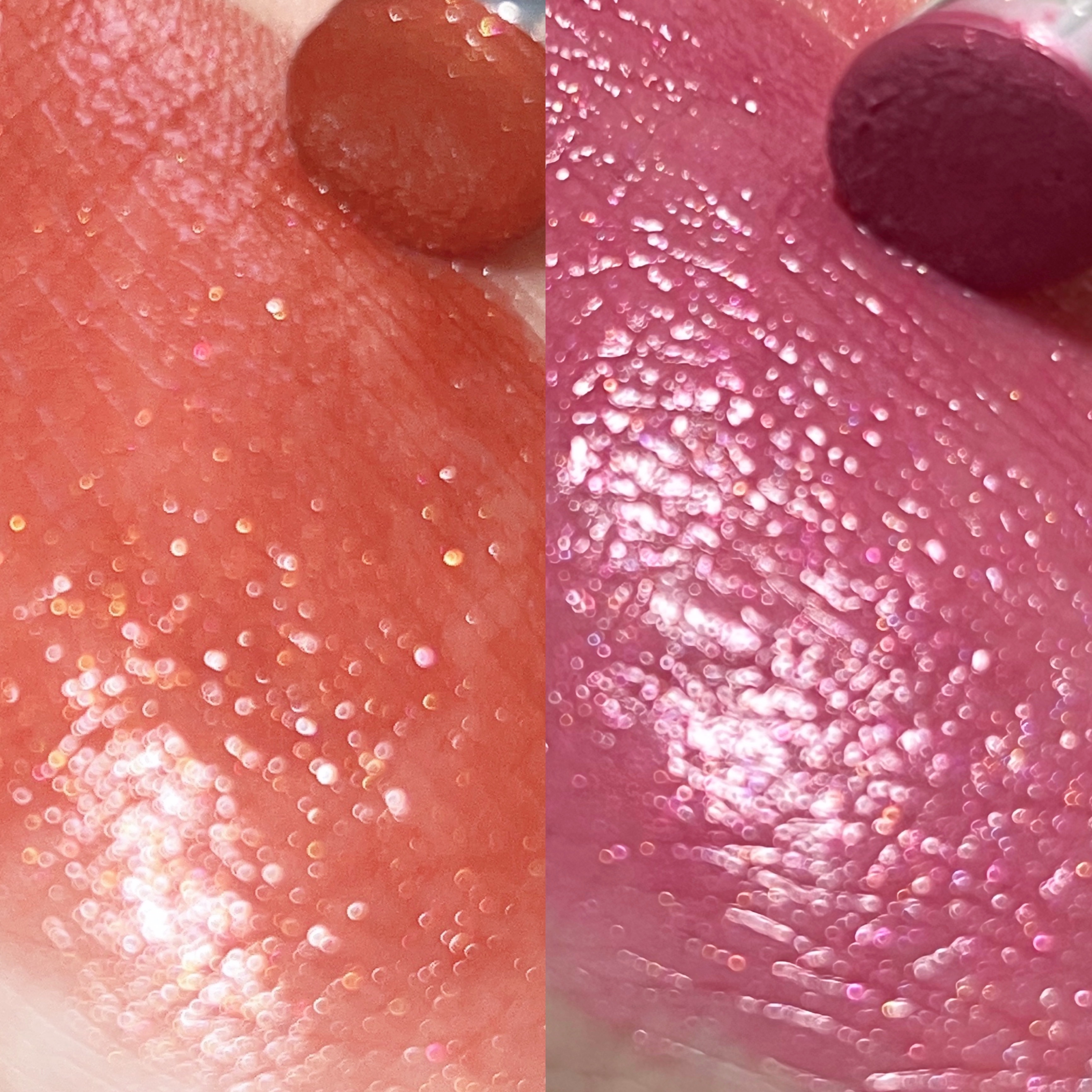 しっとり滑らかな塗り心地でリップバームなので保湿も◎ 持続性はないものの発色抜群で一気に華やかな顔にしてくれるよ🤲 透け感のあるピンクコーラルで3つの中で1番使いやすいカラー🧡 難しいカラーと思ってたけど偏光ラメ?っぽいのが入っててめちゃくちゃ可愛かった😍1番のお気に入りー!!