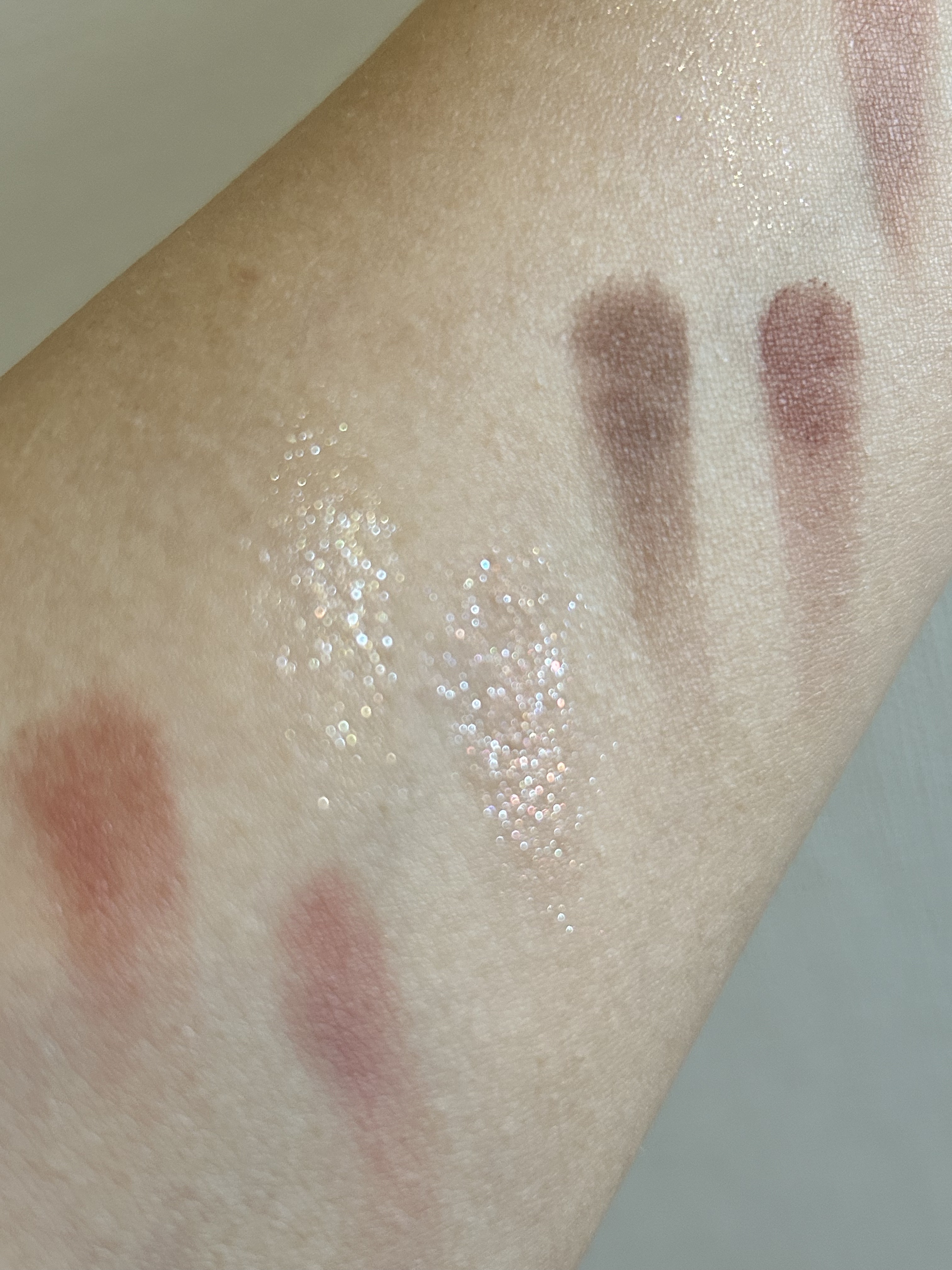 手持ちのマットのアイシャドウは比較的サラッとしたものが多いのでびっくりしました! 発色が良いので少量でも充分でした。 BAさんはラメは指塗りがオススメとの事でした! その方が濡れたツヤが出ますと言われました☺️ 500の右下はチークにもオススメと教えてもらったので使ってみたら色持ちも良くて可愛かったです🩷 500はTFのゴールデンアワーを持っているので似ているかなと迷いましたが、質感が全然違うので買ってよかったです!