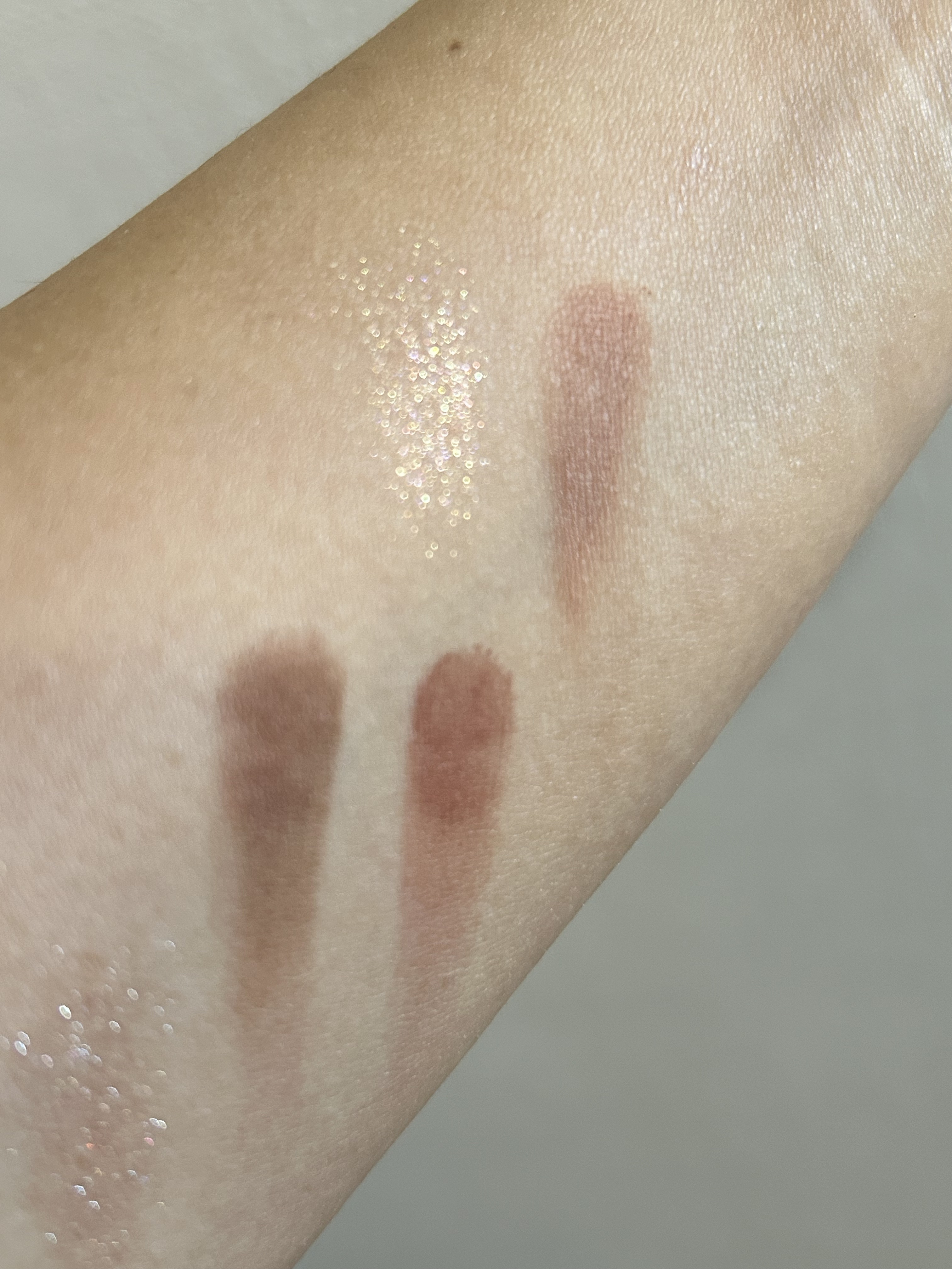 ベースの水色は濃く重ねなければほとんど分からず、とにかくラメがキラキラで透明感が爆発します💥 ゴールドのラメがメインなのでイエベの私でも使えます。 オレンジのアイシャドウと合わせると少しピンクがかった感じになります。
