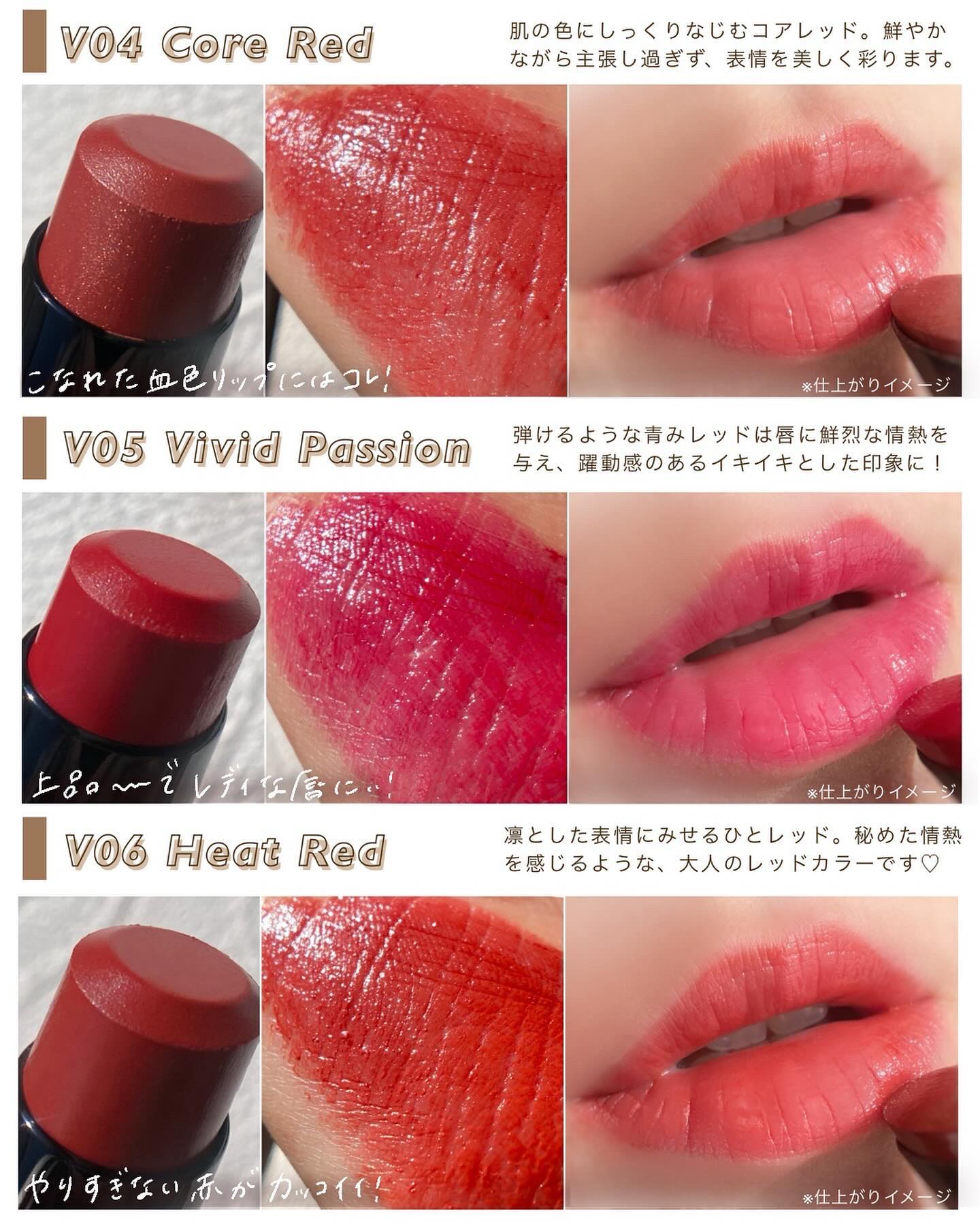 - 美粘膜のようなツヤ膜に潜ませた血色感が、凛とした平静さの中にある強い情熱を滲ませる。 「鼓動の赤」と「美粘膜のようなツヤ」で、つけた瞬間、表情にまでいきいき感が漲る。 生命感が溢れる、鮮やかで脈打つような仕上がりが長時間続く美容液ルージュ。