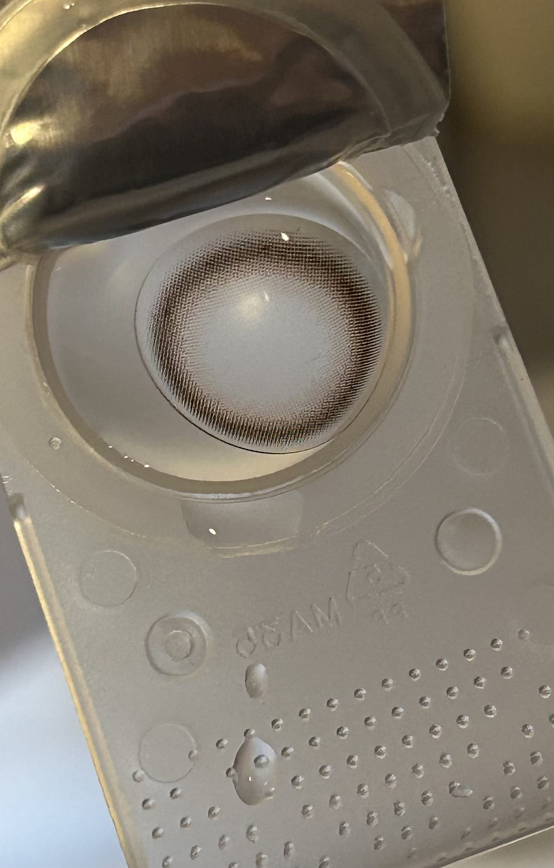 モラクドーリッシュグレーDIA14.2mm着色直径 13.2mm(体感13.3mm弱)BC8.6mm含水率55%2枚目 自然光3枚目 室内4枚目 室内(暖色ライト)5枚目 レンズ 6枚目 似てそうカラコン比較(ドーリッシュグレー/ぴゅあベージ...