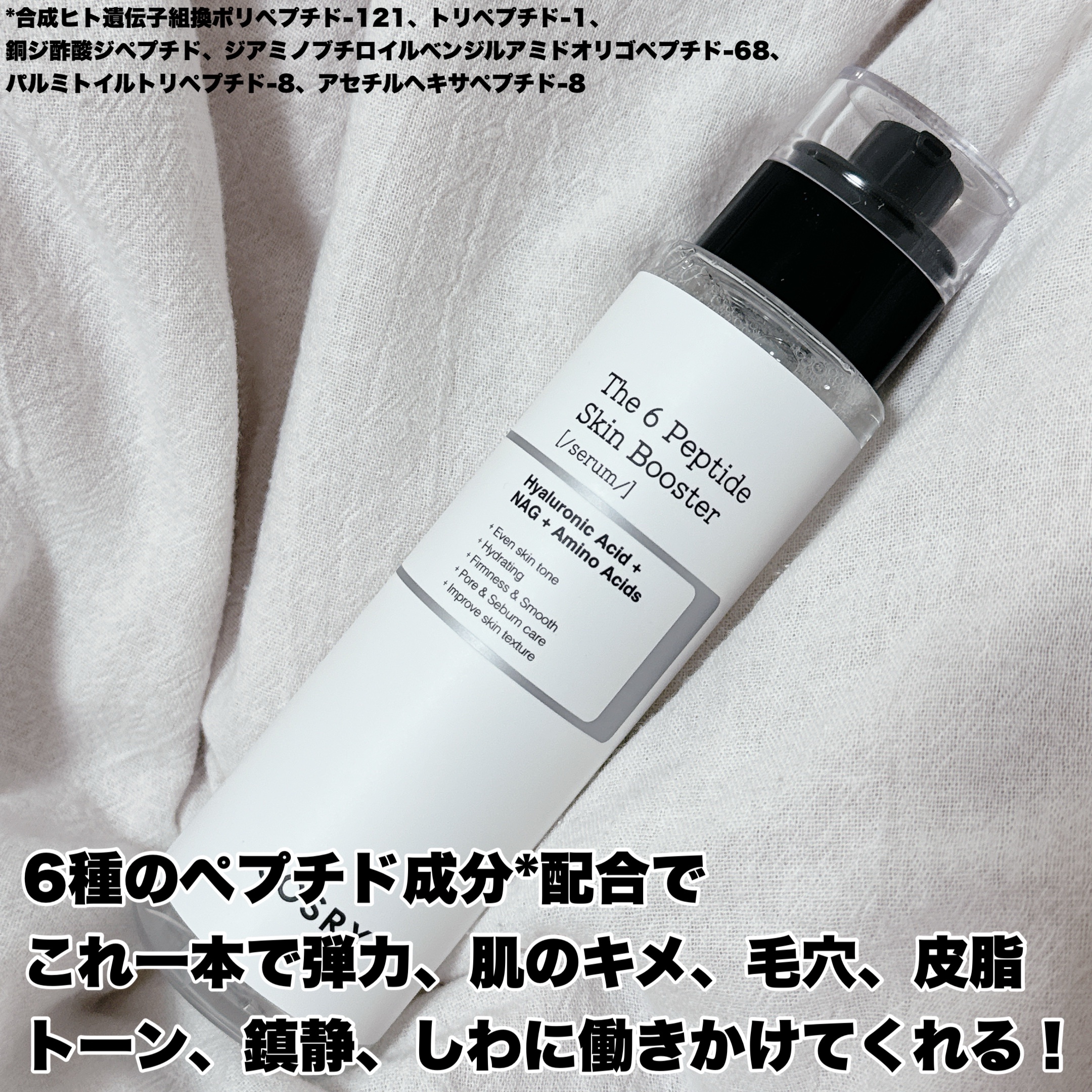 ⭐︎ザ・6ペプチドスキンブースターセラム⭐︎選別された6つのペプチドが含まれてる!・合成ヒト遺伝子組換ポリペプチド-121(弾力⤴︎)・トリペプチド-1銅(肌のキメ✨)・アセチルヘキサペプチド-8(しわ)・ジ酢酸化ジペプチドジアミノプチロイル...