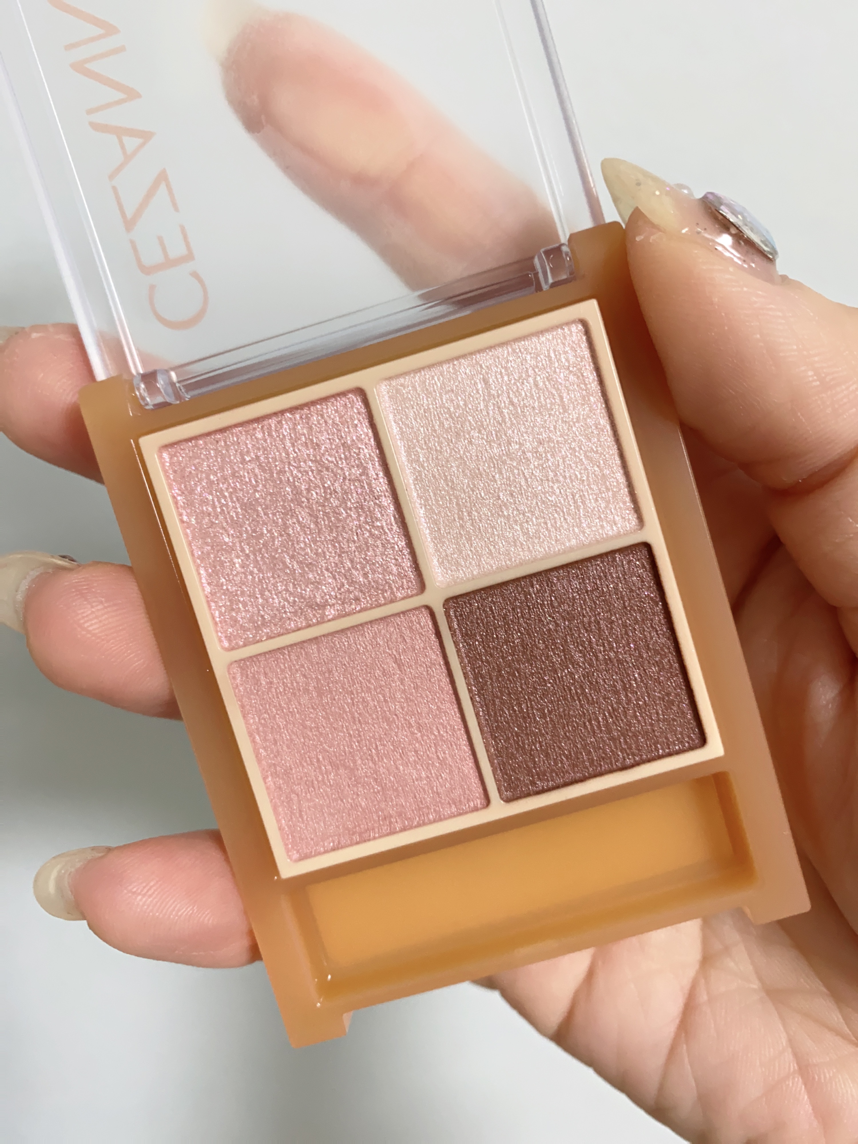 - ラメ・パール・マット3質感の4色アイシャドウ。 肌馴染みの良いベージュを基調としたカラー。ラメ・パール・マットの3質感を重ねて、自然にまぶたを強調し奥行のある大きな目元へ。 しっとり溶け込むような柔らかなパウダーなので、スルスル伸びてまぶたにピタッと密着。保湿成分(スクワラン・ホホバ種子油)配合。