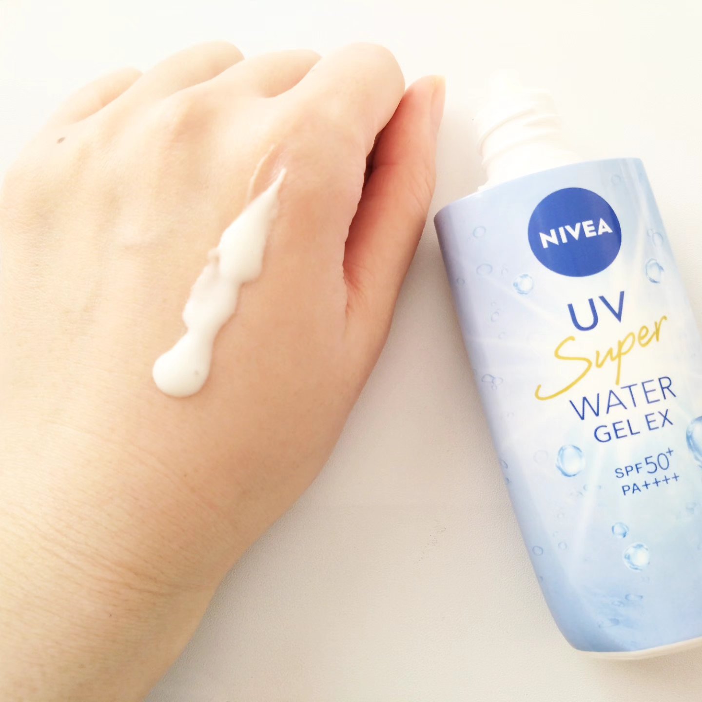 ニベアUVスーパーウォータージェル EXとってもみずみずしいジェルでのびがよくてお気に入り☀️ベタつく暑い日もさらっと濡れるので塗り直しにもいい!SPF50+PA++++でこの使用感は嬉しいです❣️香りもすっきり華やか🌼顔、身体用なので全身使...