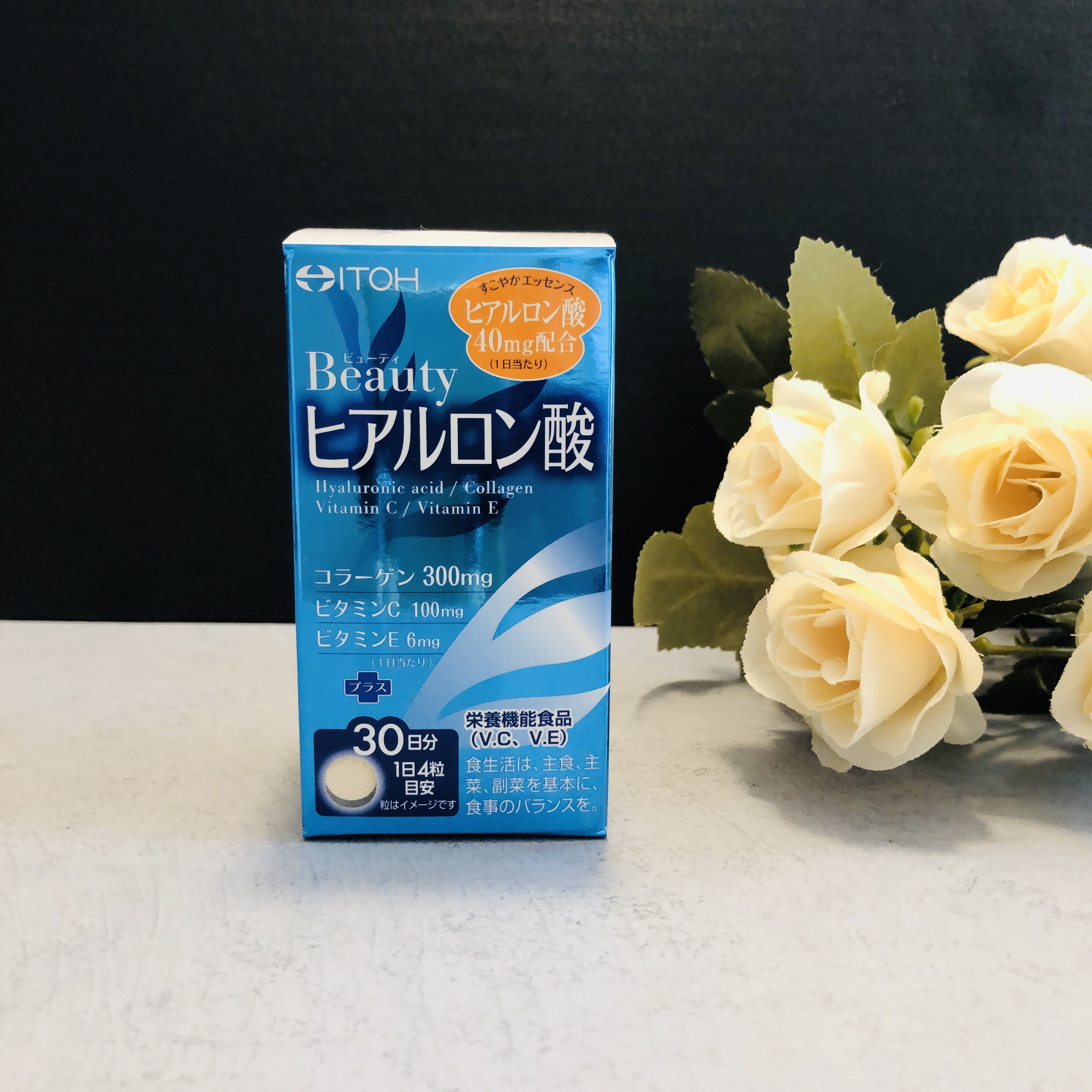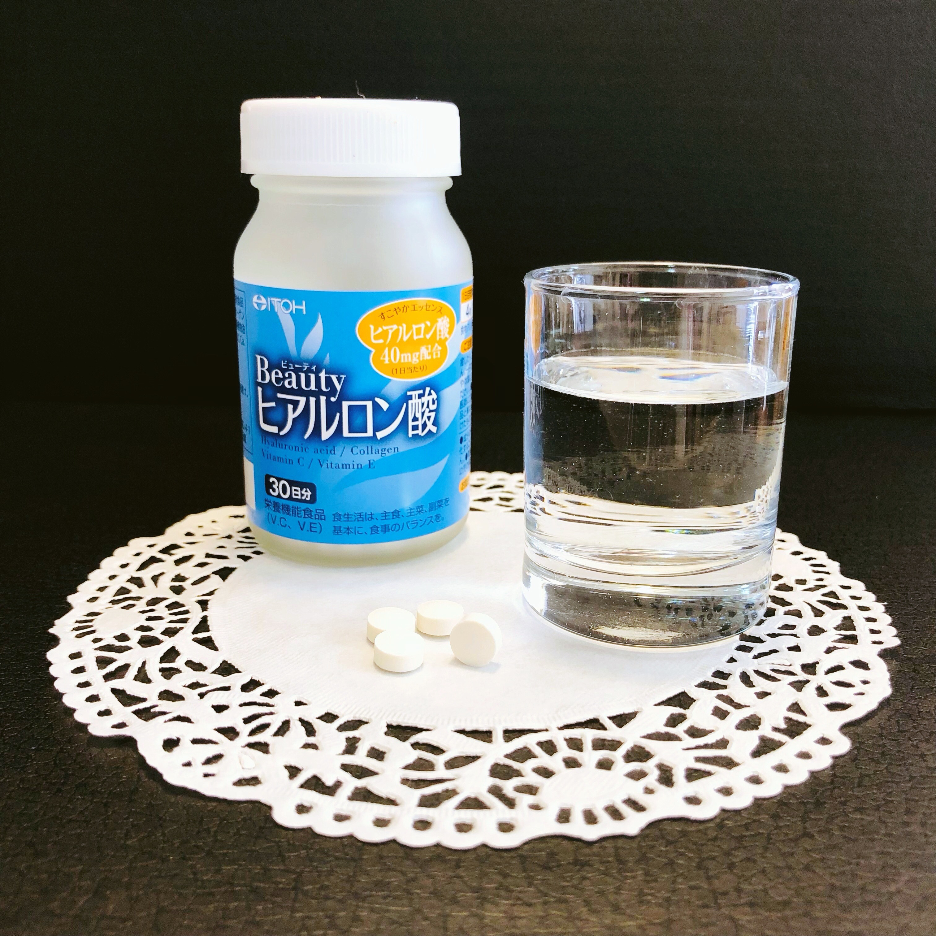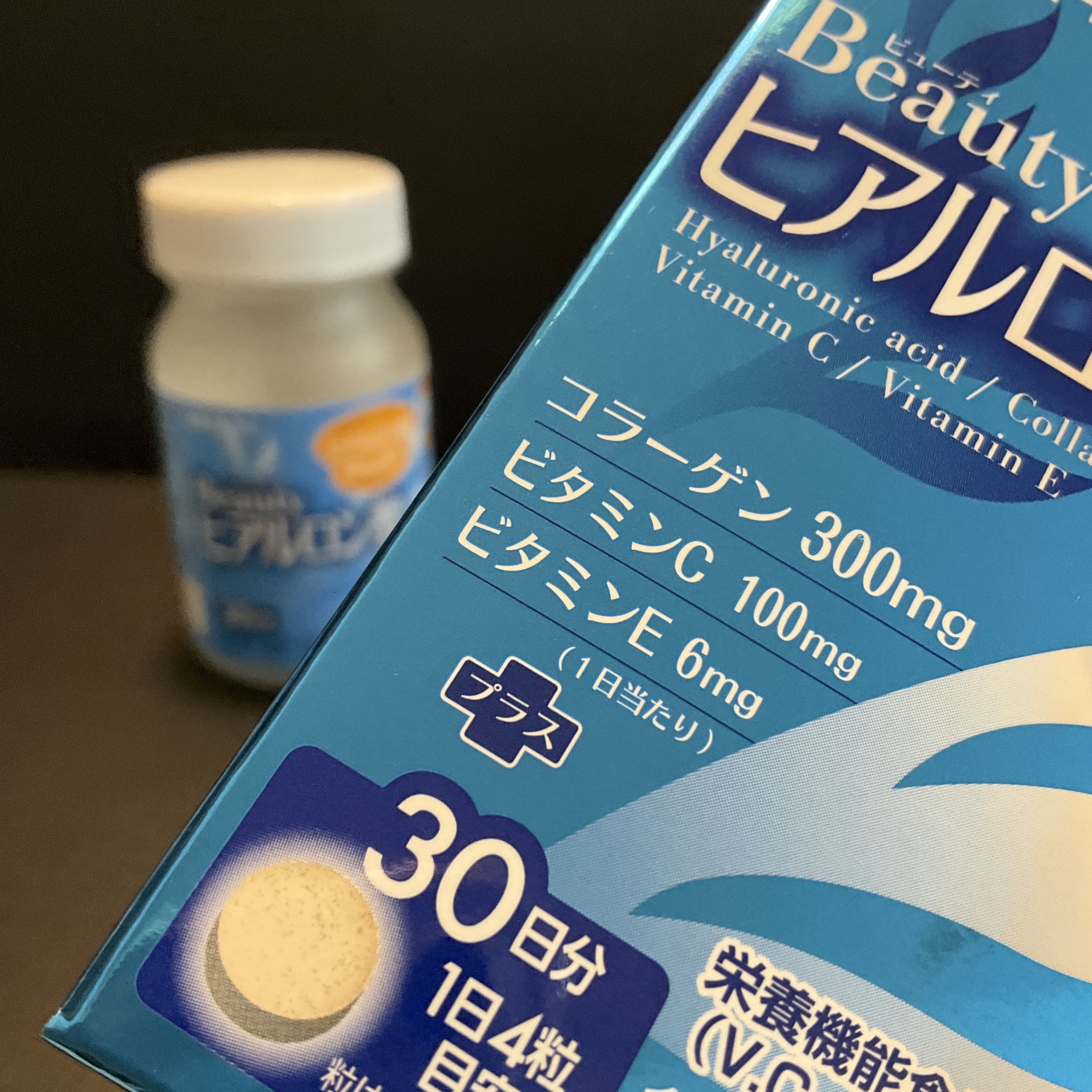 ヒアルロン酸・コラーゲン・ビタミンC・ビタミンEを配合した栄養機能食品です。 ヒアルロン酸は化粧水などのスキンケアで取り入れているほどもともと好きな成分。それを体の内側からも取り入れられたら嬉しいなと思い気になりました。 ハリ・うるおいを求める自分にとってヒアルロン酸は必要な成分だと思っているので、続けて飲んでみたいと思っています。
