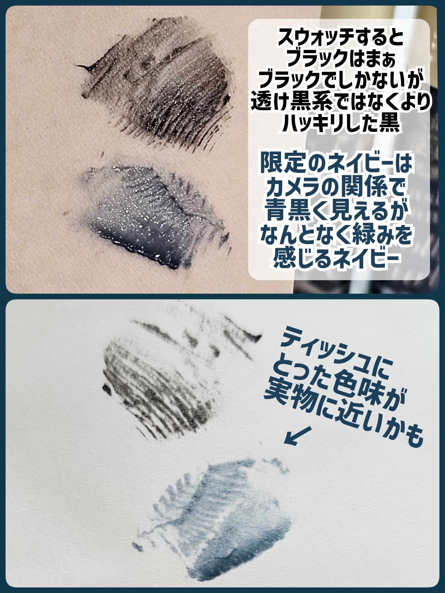 01シアーブラックを初めて使った時に感動し ヌードアイラッシュは基本的に売り切れてるので… 03のシアーグレーをGETしたのですが 太陽に透かすと03シアーグレーは やはり液が半透明のブラウンで 繊維は黒なので 色味に大きな差はなく ブラウンでも繊維が黒なので目力が死なないのも◎ カールキープもお湯落ちとは思えないくらい良い、 ダマにもならずスっとキレイなセパレートまつげが 簡単にできてとっっってもお勧めですわ…!
