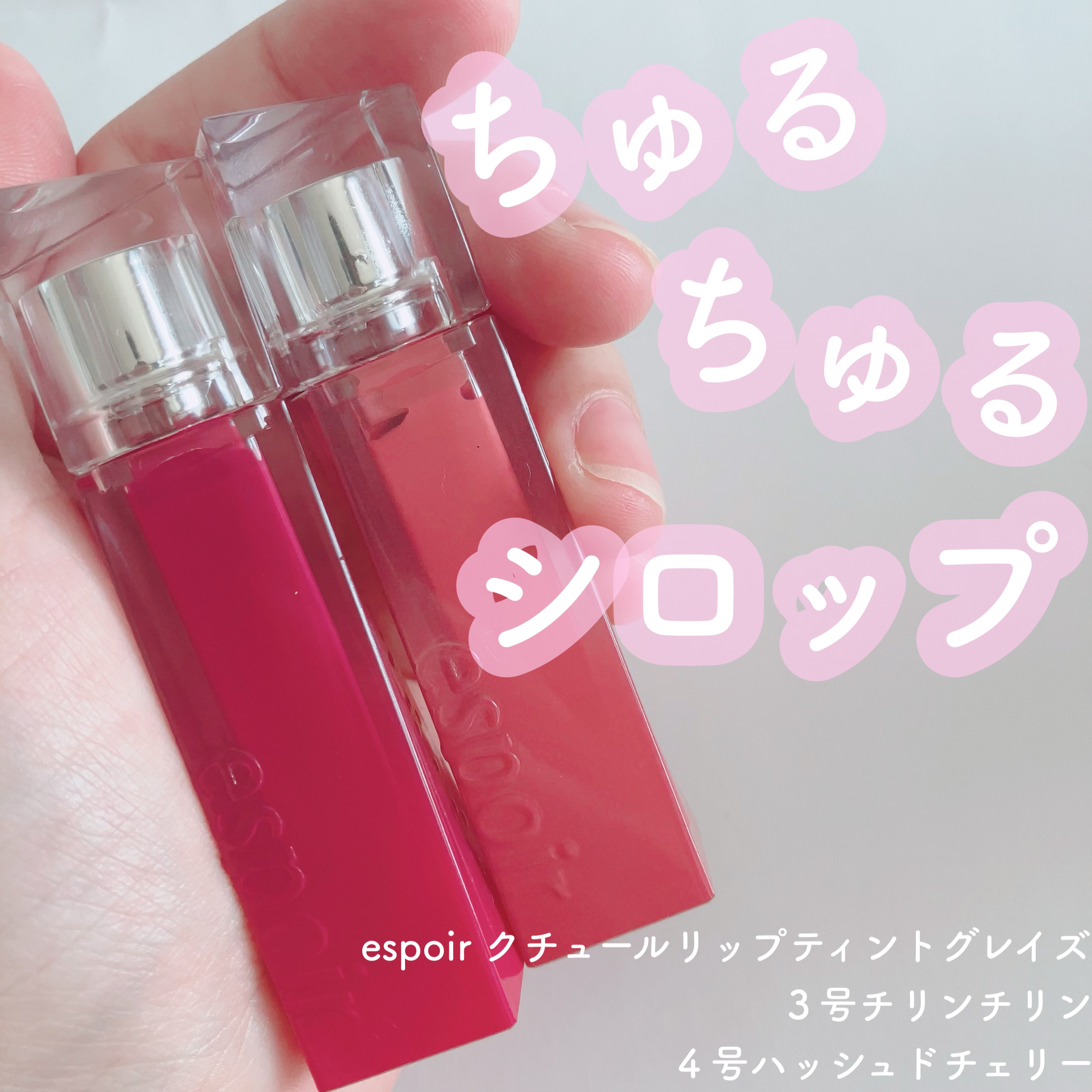 たっぷりな青みカラーで大人ピンク💗🍒espoirクチュールリップティントグレイズハッシュドチェリー果実のようなクリアな発色でツヤ感がとっても綺麗✦塗りムラにもならなくて仕上がりも好きです❤️🍒このカラーはブルベさん向け!秋冬にも引き続き使いた...