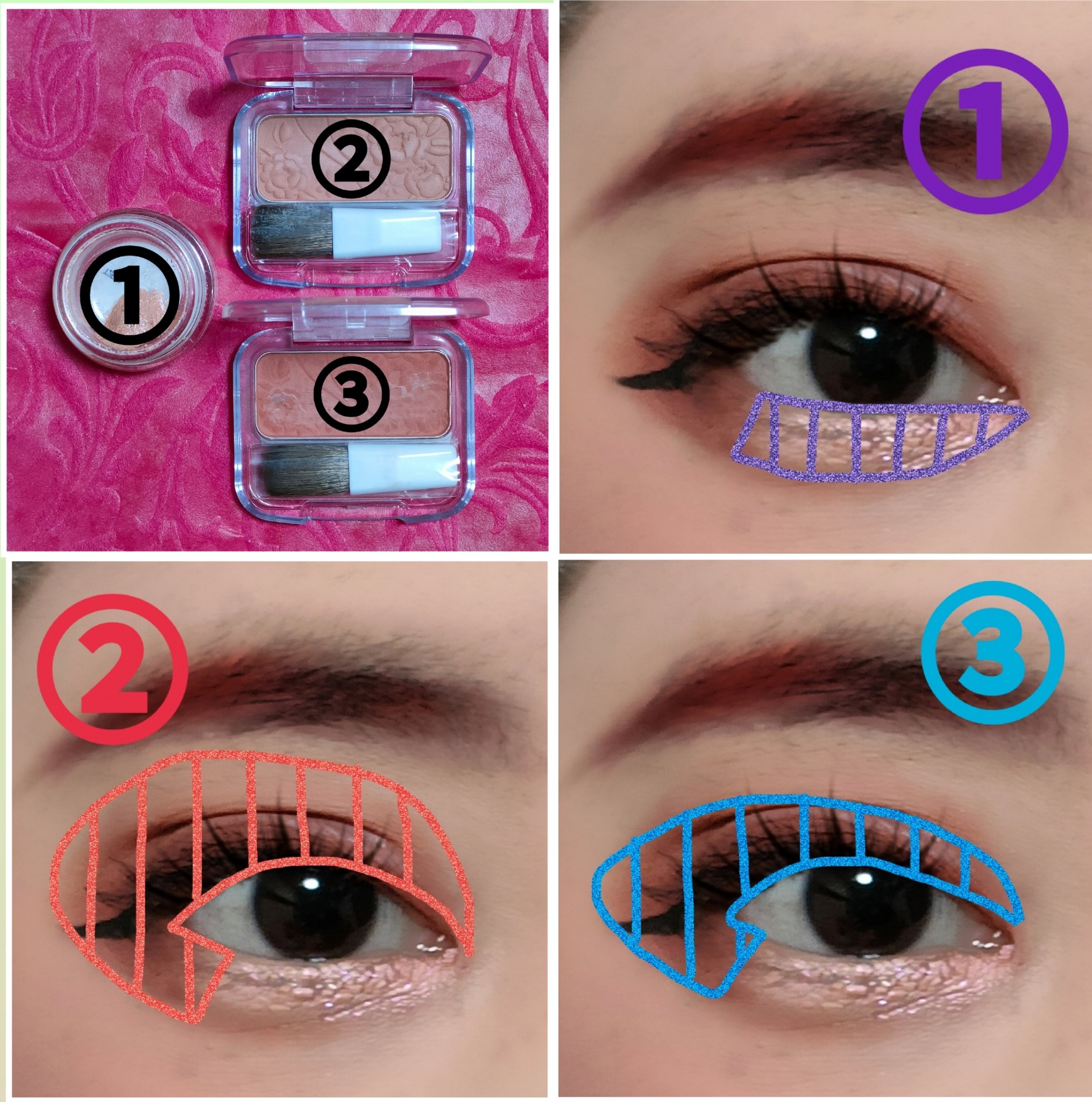 アイシャドウパレットは、URGLAM UR GLAMBLOOMING EYE COLOR PALETTE 02を、使用しました。 マスカラは、MAYBELLINE NEW YORK コロッサルボリュームエクスプレスを、まつ毛全体にまんべんなく塗ります。 リップは、wet 'n' wild MegaLast Lip Colorを、唇全体にまんべんなく塗ります。