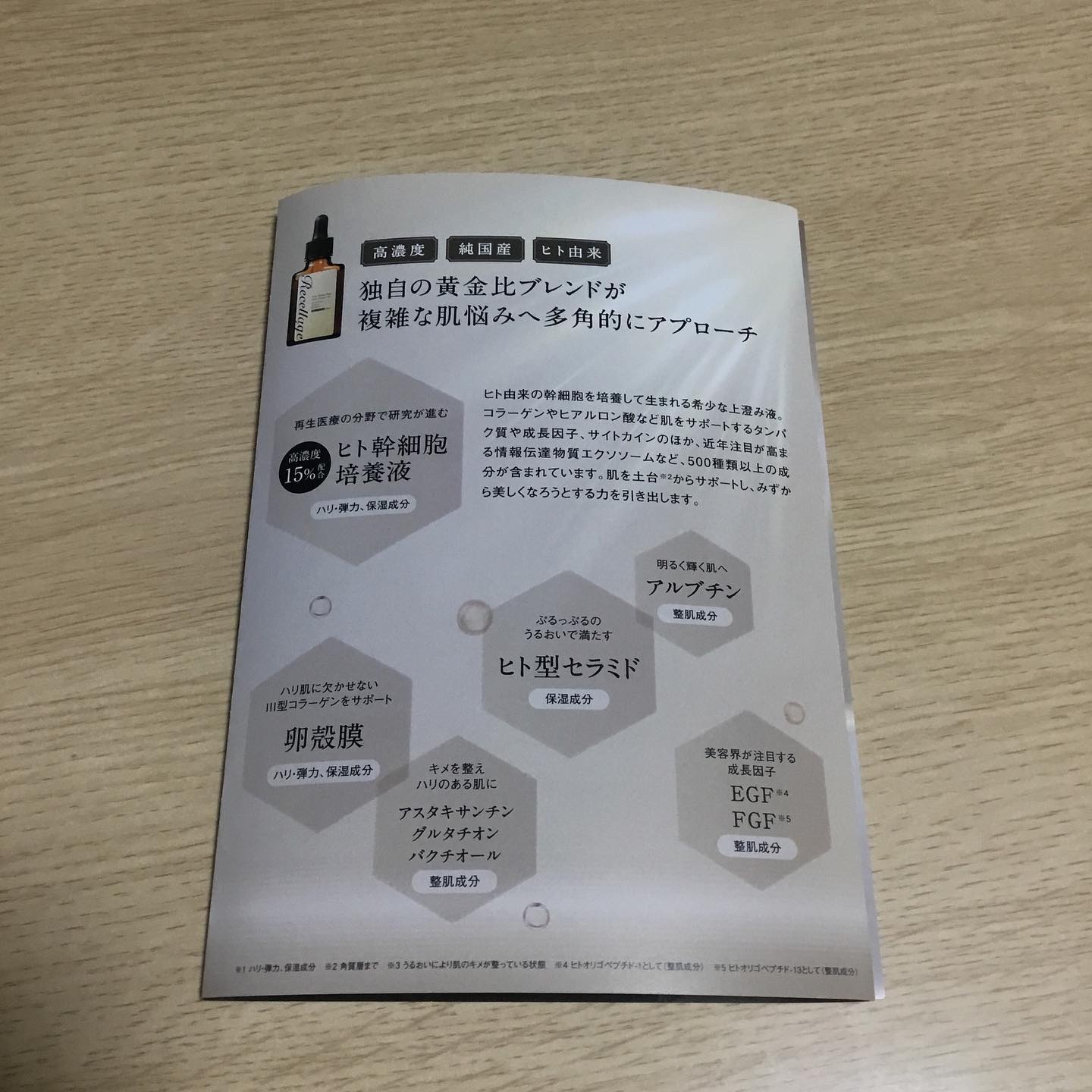 高濃度ヒト幹細胞 薬剤師・大学教授・医師も勧める話題の成分ヒト幹細胞の上清だけを使用。高濃度ヒト幹細胞培養液を15%も贅沢に配合しているのに、お求めやすさにもこだわった美容液です。 希少成分エクソソーム! 美容業界で話題の成分、エクソソームを配合。わずか0.5%しか抽出できない希少成分をなんと1mlに5億個も配合しました! 濃厚なとろみあるテクスチャー。とろみがあって流れないから肌にしっかりフィットして使いやすい⭕️