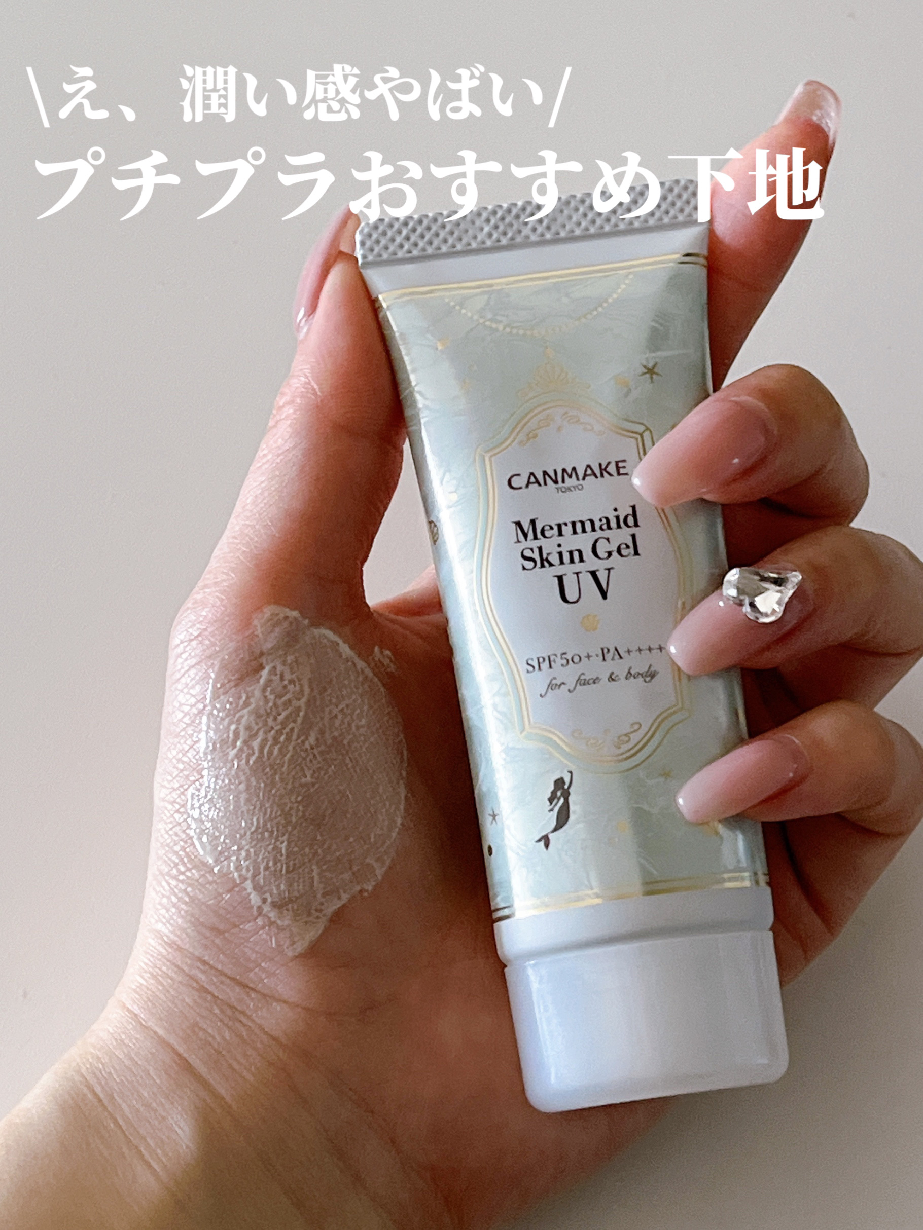 - パシャッと爽快!人魚姫気分♥化粧水感覚で使えるUVジェル 国内最強レベルのUVカット効果で紫外線から肌を守ります。 肌にのばすとパシャッとはじける水感ジェルでみずみずしく軽い仕上がり。 顔だけでなく全身にも使えます。 洗顔後、これ1本でスキンケア・保湿下地・UVカット下地としてご使用いただけます。 ※2~3時間ごとにこまめに塗り直しをしてください。 また、肌をタオル等で拭いた際も塗り直しを推奨いたします。