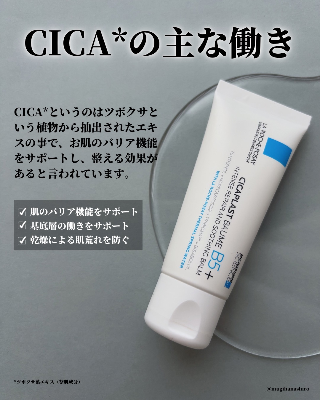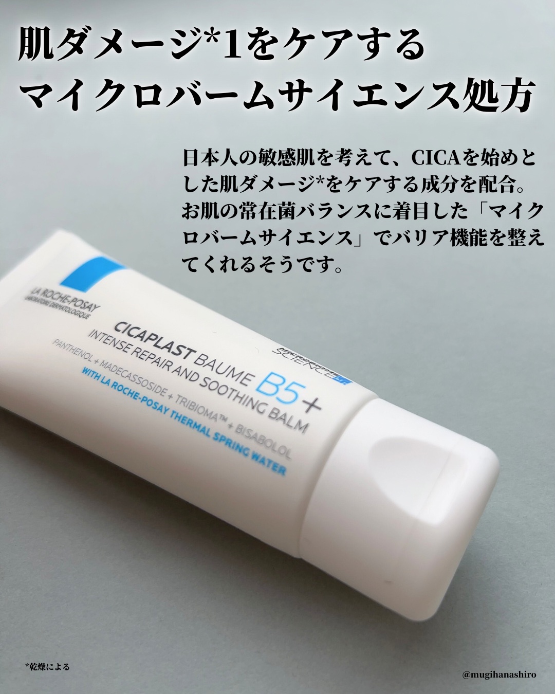 - 塗るだけSOSシールド うるおいの先、肌荒れ予防やダメージケア*1まで。 ①7種の肌悩み*2に。肌ダメージ*1を速攻ケア*3 ②独自のダーマCICAテクノロジー*4採用。 CICA成分*5、パンテノールB5*6、独自成分トリバイオーマ*7配合。 ③長時間*8見えない刺激*1から守るセカンドスキンシールド*9 *1 乾燥による *2カサつき、乾燥による肌荒れ防止、乾燥によるくすみ、キメの乱れ、乾燥ガサガサ肌への保湿、美容トリートメント後(肌管理後)、花粉などの飛散物汚れからの肌保護 *3 お手入れにより *4 ツボクサ葉エキス、α-グルカンオリゴサッカリド、ポリム二アソンチホリア根汁、乳酸桿菌、マンノース(全て整肌成分)、パンテノール(保湿・整肌成分) *5 ツボクサ葉エキス(整肌成分) *6 パンテノール(保湿・整肌成分) *7 α-グルカンオリゴサッカリド、ポリム二アソンチホリア根汁、乳酸桿菌、マンノース(全て整肌成分) *8 ラ ロッシュ ポゼ調べ。個人差があります。 *9 化粧膜