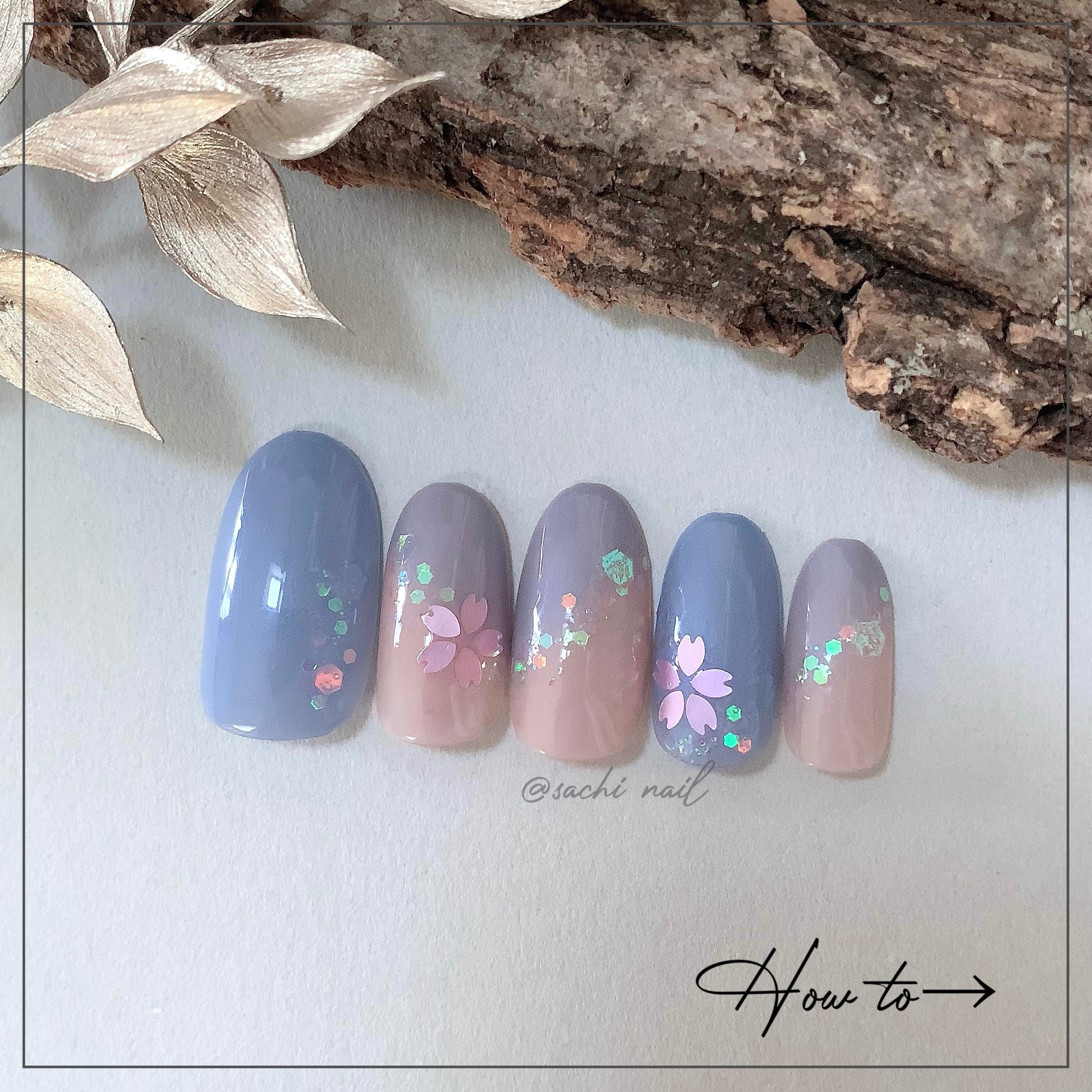 ワンカラーでも指ごとに色を変えるだけでオシャレに見えます💕 画像のようにゴールドラインとストーンを少し足すだけで華やかさがアップ🥰 何度かご紹介したことのあるスポンジで作るグラデーションです✨ スポンジを使うことで境目が綺麗に馴染んでくれます💕 アルミホイルの上でブラウンとトップコートを1:1くらいで混ぜたものを、トップコートのハケに取って3箇所に塗るだけ👌 事前に混ぜたものを塗ることで、爪の上でぼかすより簡単に出来ます💕 ベースカラーが乾く前に点置きしてぼかすことで綺麗にぼかせます✨ スピードが大事なので、使うポリッシュのキャップは全て開けておきましょう😊 天然石のラインはガタガタの方がより天然石っぽく見えるので、ラインを描くのが苦手な方でも大丈夫🙆♀️ 難しそうに見えて、やってみると意外と簡単に出来ます♡