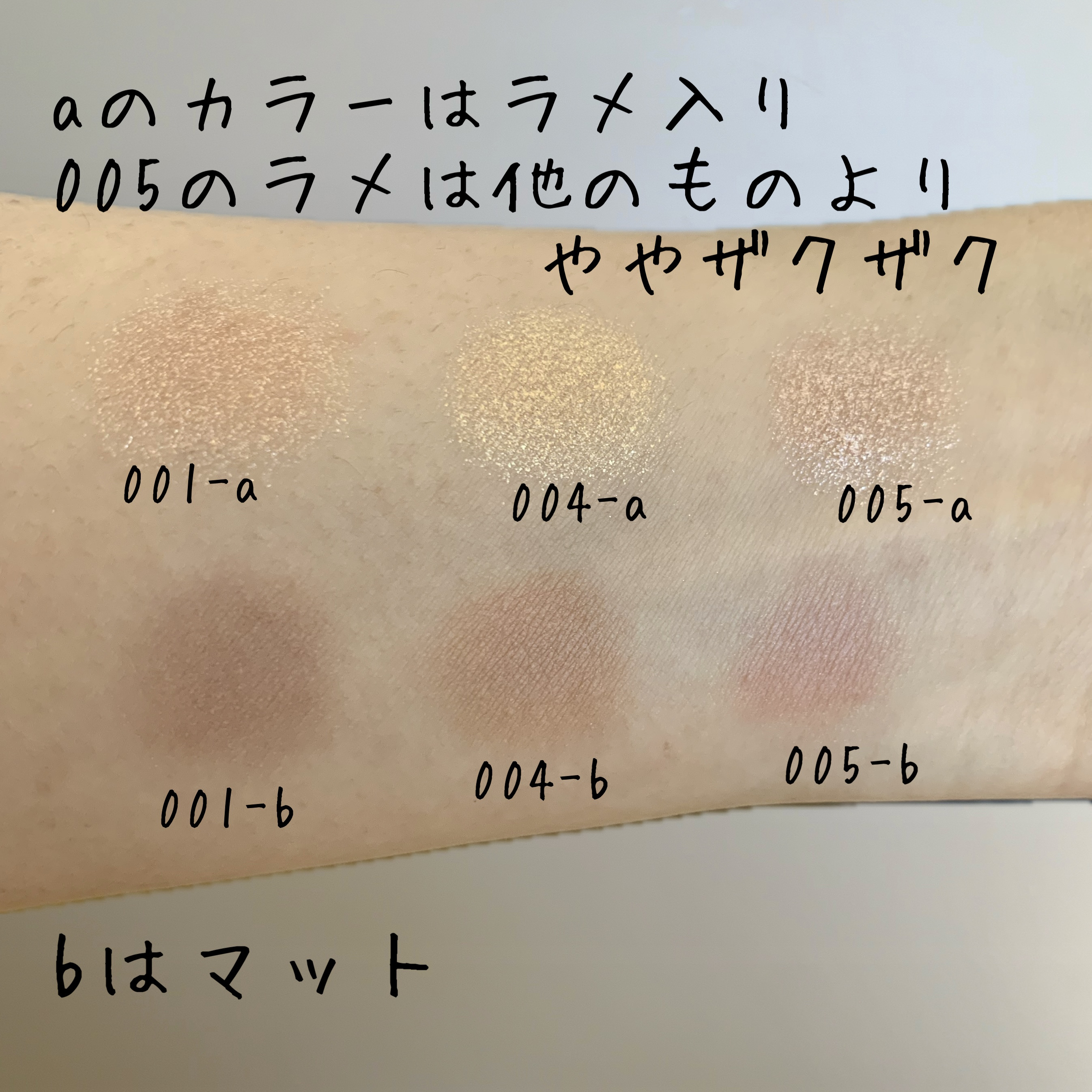 005Vintage Tutuは初めのうちは使いこなせず、顔色悪くなったりしましたが、塗り方を工夫すればイエベでもいけます。 004Timeless Goldはイエベにピッタリ。 ブラウンでは物足りない方、ゴールドメイクしたいけれど派手すぎるのはちょっと…という方におすすめです。 001Cashmere Dreamはとても素敵なカラー。 何色なのか。 表現が難しい。 意外とくすみカラーなので、使い方に注意が必要なパレットです⚠️