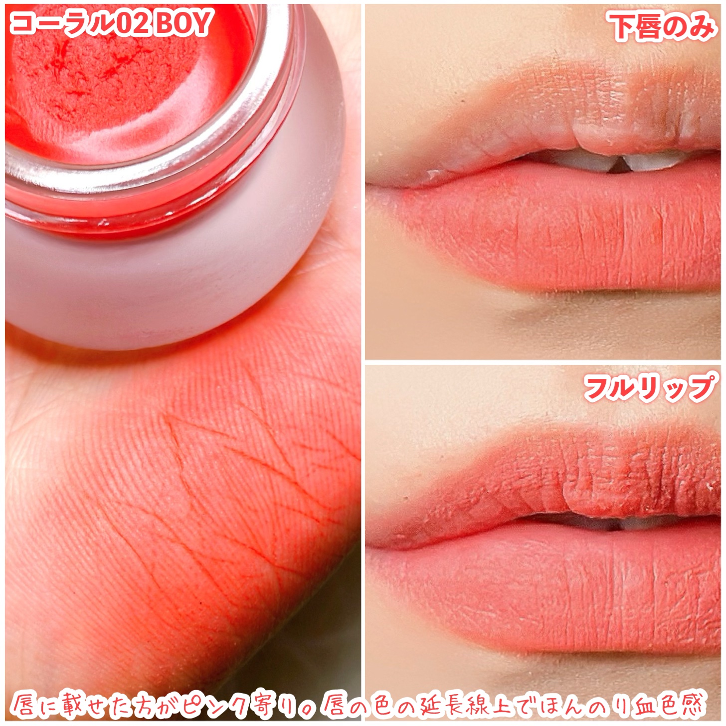| 重ね付けしても濃くなりすぎないのが嬉しい!! リップスティックとリップバームの中間の仕上がり◎ | 詳細を見る | ||