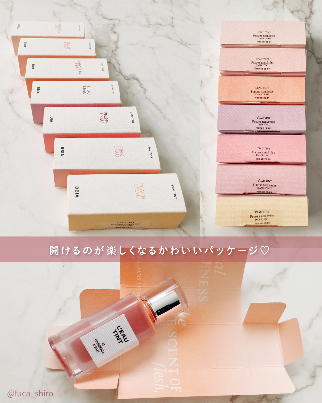 - - うるおいリップなのにしっかりカラーが定着し、時間が経っても塗りたてそのままのカラーを維持 *色が落ちにくいことから「飲み会リップ」としてSNSで話題に - 水のように軽くて快適なグロウティント、塗り重ねるほど鮮やかで透明に浮き上がる水彩画カラー - 香水瓶をイメージしたBBIA初のカスタムデザイン。パッケージはもちろん、カラーとテクスチャーに真心を込めて開発