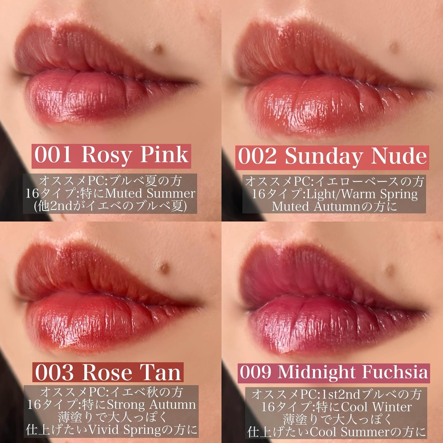 マスクにもつきにくく、色展開も豊富で高級感のあるパッケージ🤩 どれをとっても私は大好きなんですが、皆さんお持ちですか? サロンでも大人気なので現在は12色置いています。 あくまでオススメなので、濃いものは指でポンポン塗ったら春夏の人も使いやすいし、逆に柔らかな色のものも重ねれば濃くなるので、自分の好き!を大事にしてくださいね☺️❤️ ちなみにブルベ夏冬の私(クールサマー)の私は64.66が大好きです!!!!!!💘💘