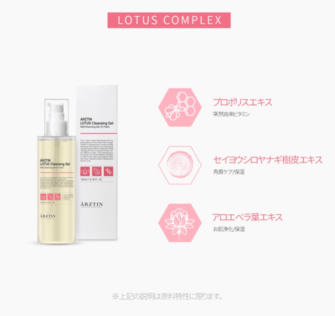 メイク落としと洗顔の2機能を備えたオールインワンクレンジングジェル 蓮の根エキス、プロポリスが保湿とうるおいを与え、エルツティン独自のレシピにて、肌をやわらげハリを与える 洗い上りはさっぱり&すっきり。