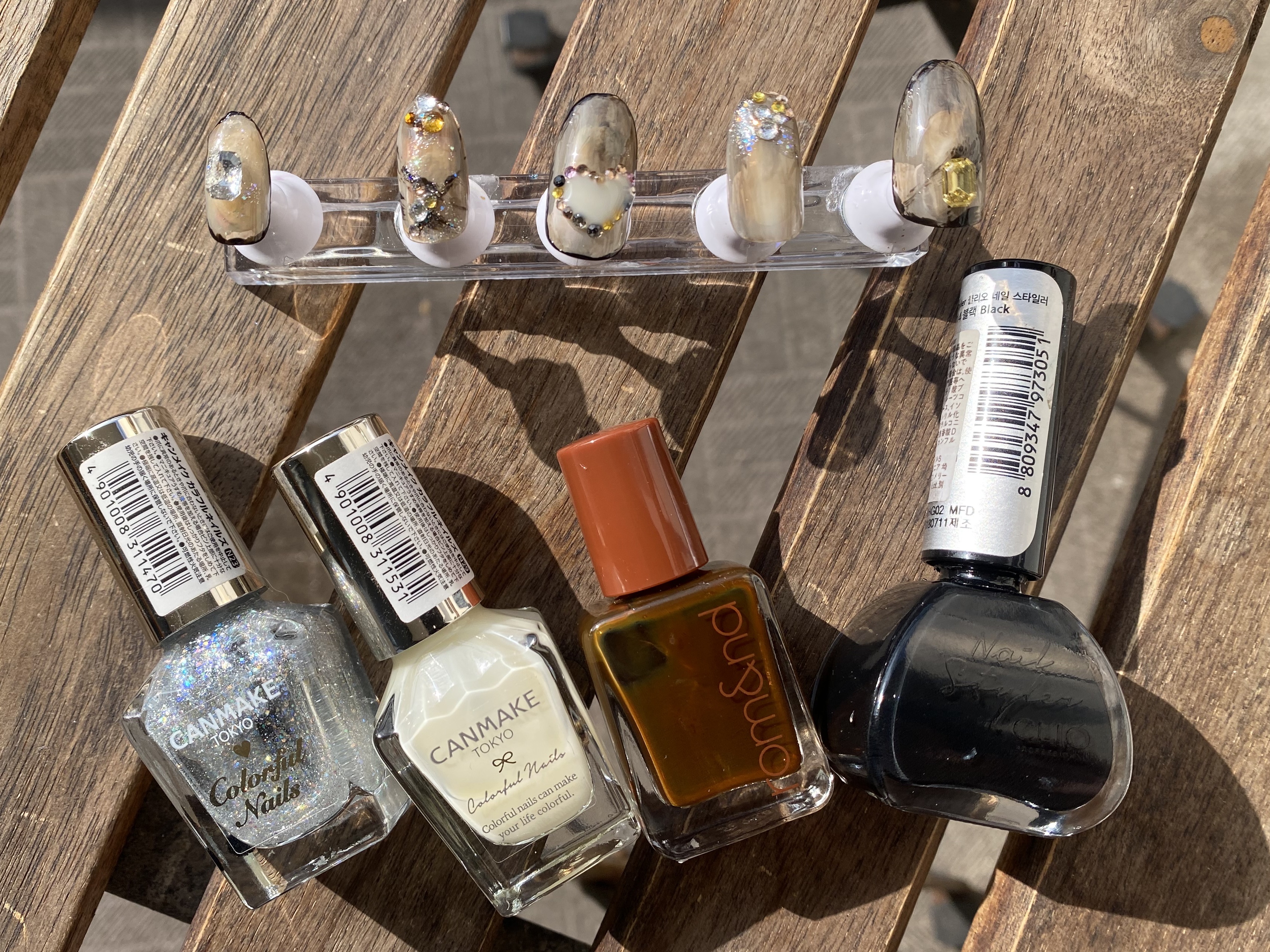 rom&nd ムードペブルネイル【09 AMBER】が、透け感強め+みたらしカラーで可愛いです。 個人的に、うおおおお!!?😍ってなったのは【N20 ゴールデンビジュー】の上に【09 AMBER】を重ねた瞬間です。 秋?の限定カラーだった【N110 木枯らし】は赤みを感じるブラウンで透け感あって、すごく可愛いのでオススメです!