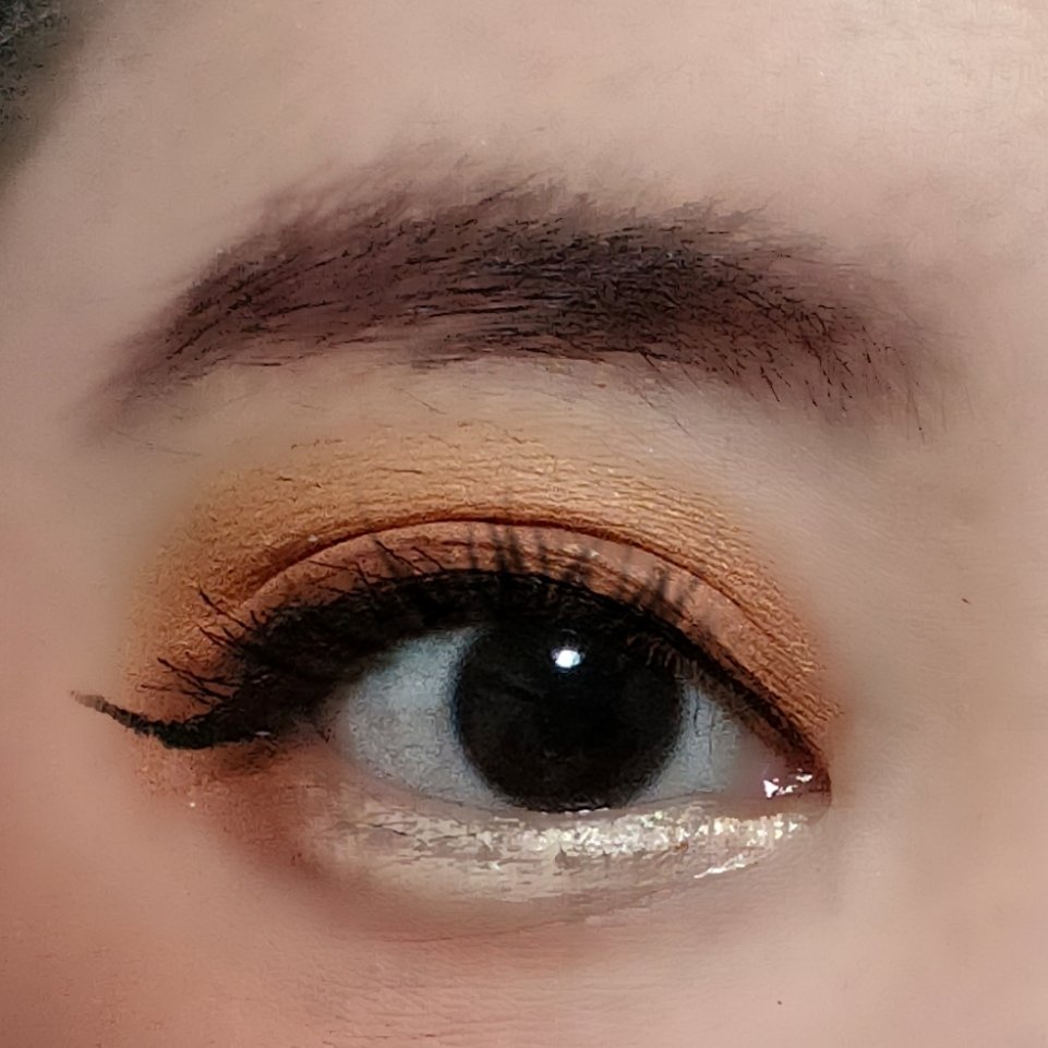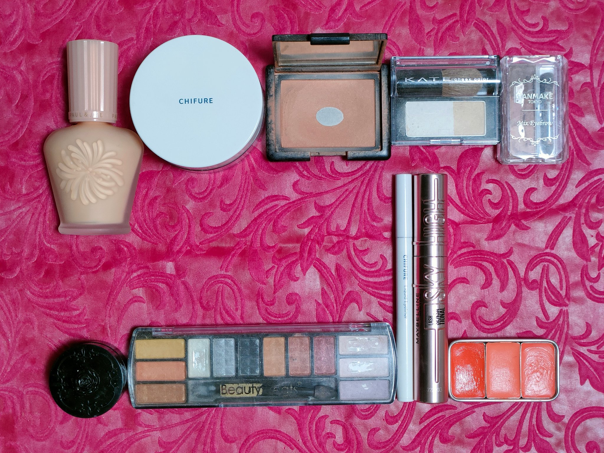 アリィー ニュアンスチェンジUV ジェル RSを、顔全体にまんべんなく塗ります。 RMK RMK ジェルクリーミィファンデーション 103を、顔全体にまんべんなく塗ります。 ジョンソンベビー ジョンソン ベビーパウダーを、顔全体にまんべんなく軽くはたきます。 THE BODY SHOP bronze shade warm glowを、両頬に塗ります。 KATE リフレクトミラーアイズ BR-1の締め色を、眉毛全体にまんべんなく塗ります。 URGLAM UR GLAMBLOOMING EYE COLOR PALETTE 01を、使用しました。 ちふれ リキッド アイライナー 筆ペンタイプ BK30 ブラックを、塗ります。 CEZANNE エアリーカールマスカラを、まつ毛全体にまんべんなく塗ります。 MAYBELLINE NEW YORK コロッサルボリュームエクスプレスを、まつ毛全体にまんべんなく塗ります。 MAYBELLINE NEW YORK SPステイ マットインク 135を、唇全体にまんべんなく塗ります。