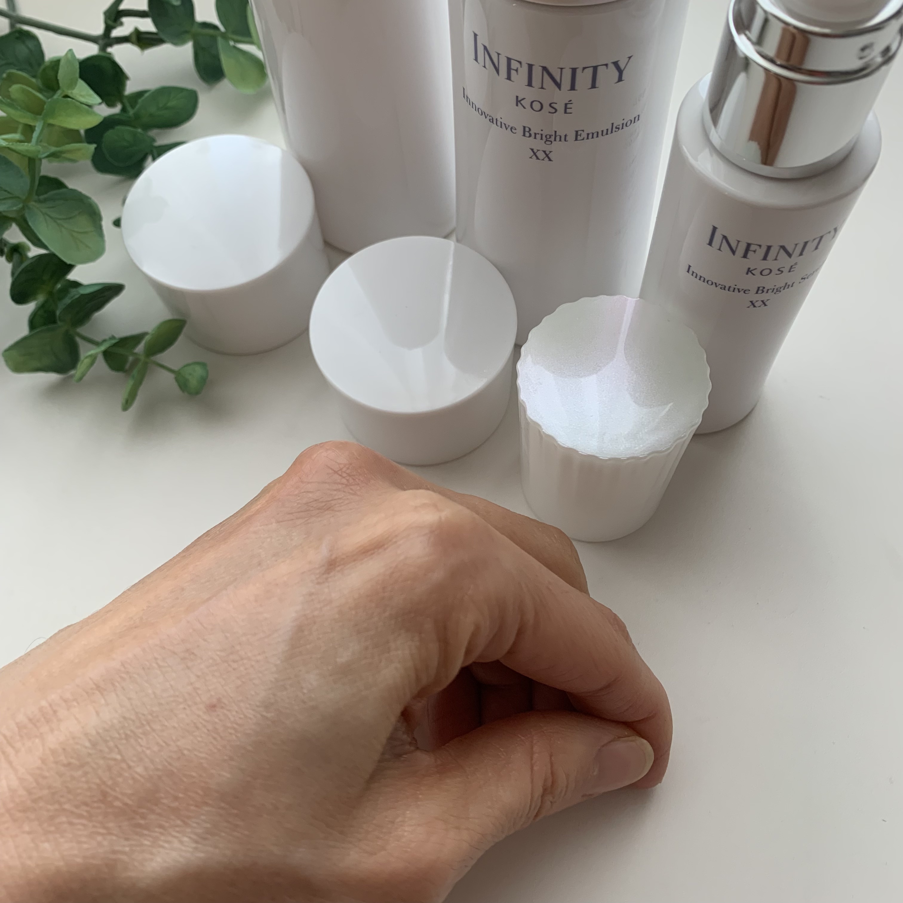 コウジ酸配合で、美白ケア&エイジングケア!! #インフィニティ #イノベイティブブライト ローション XX 年齢を重ねるたびに難しくなる大人の美白に着目✨ シミの悩み点へのアプローチに加え顔全体の面でも光を回すような美白ケアを実現。 特にエマルジョンが気に入りました〜 濃密!! そんなエマルジョン。