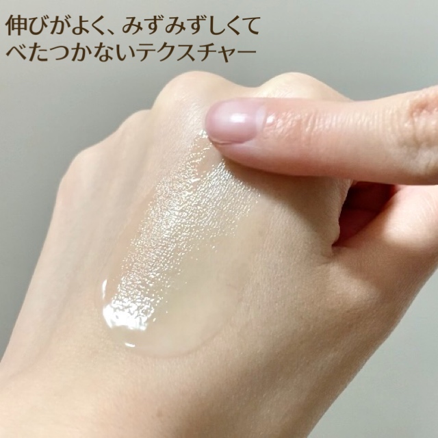 - 水、PG、BG、水添ポリイソブテン、ペンチレングリコール、アセチルヘキサペプチドー38、ハナスゲ根エキス、グリセリン、変性アルコール、マンゴスチン果皮エキス、クロレラ/シロバナルーピンタンパク発酵物、クインスシードエキス、PCAイソステアリン酸PEG-40水添ヒマシ油、精油、香料、ヒアルロン酸Na、グリチルリチン酸2K、水溶性コラーゲン、水溶性エラスチン、カルボマー、キサンタンガム、水酸化K、フェノキシエタノール