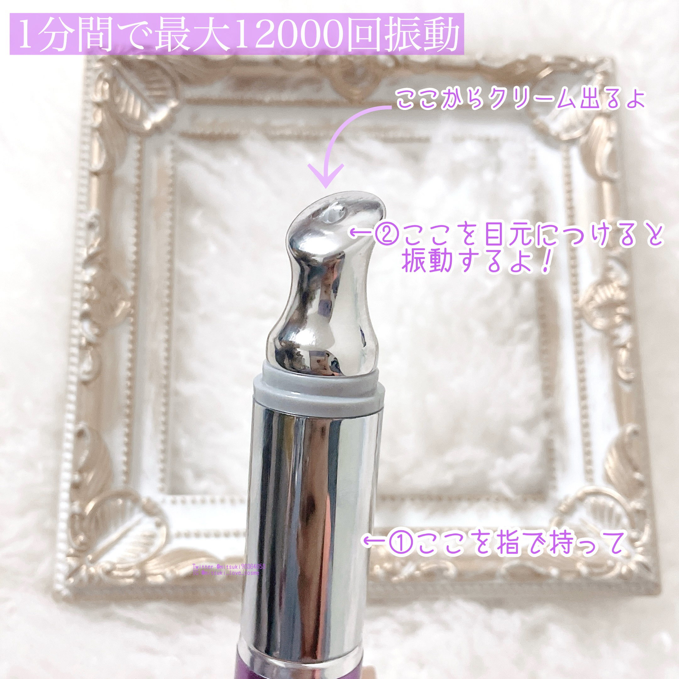 - 振動するアプリケーター付きのアイクリーム 肌を柔らげ目元や口周りなど ハリ弾力ケアが必要な個所へ集中アプローチ CICA REEDLE™(0.01%)* *ツボクサエキス(整肌)、シリカ(スクラブ) ■このような方へおすすめ 目元が乾燥してカサつきやすい方 目元のハリが衰え年齢肌を感じる方 手軽に目元ケアがしたい方 肌馴染みの良いアイクリームをお探しの方