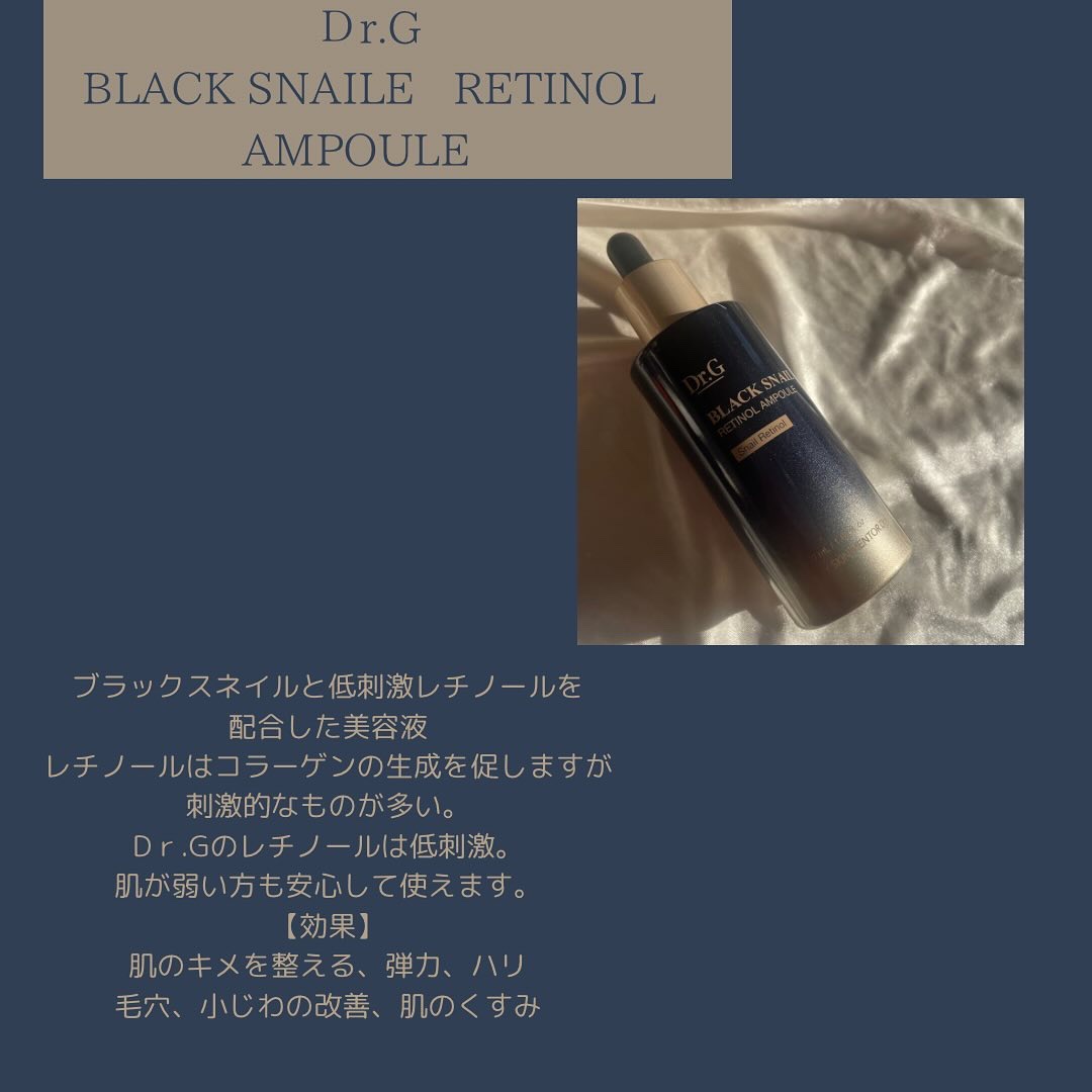 🌼*・\韓国皮膚科医が創業したDr.Gの名品!/○Dr.G()・ブラックスネイルレチノールセラム・ブラックスネイルクリームを、ご紹介します!📍おすすめ𝐩𝐨𝐢𝐧𝐭︎︎︎︎☑︎Dr.Gならではのブラックスネイルエキス配合。肌の弾力やハリにアプロー...