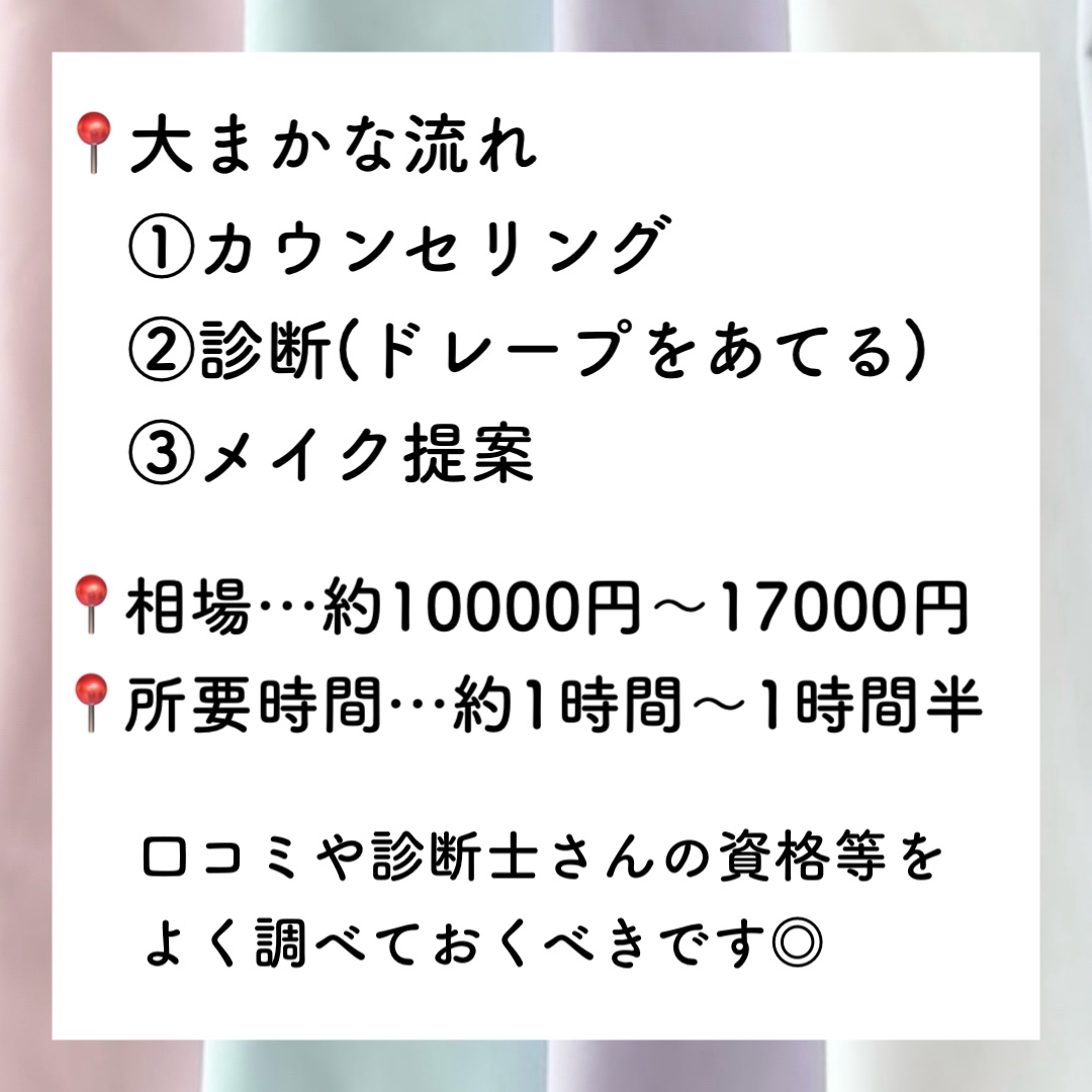 私もパーソナルカラー診断プロの方にやってもらいたい、、💖 プロに見てもらうと自己診断と全然違うってこともあるから大事だよね👍🏻 10000円するんだ、、😳!結構お高めなんだねぇー、、 完全ブルベなんだね!(?)伝わるかな?笑 ぷりんちゃんイエベだと思ってたー!! 提案してくださったメイクで帰れるの最高すぎない?! ぷりんちゃんはすっぴんでも可愛いからなんも抵抗ないんだろうなぁー、、笑💕🫶🏻 参考になったよ!ありがと🥺