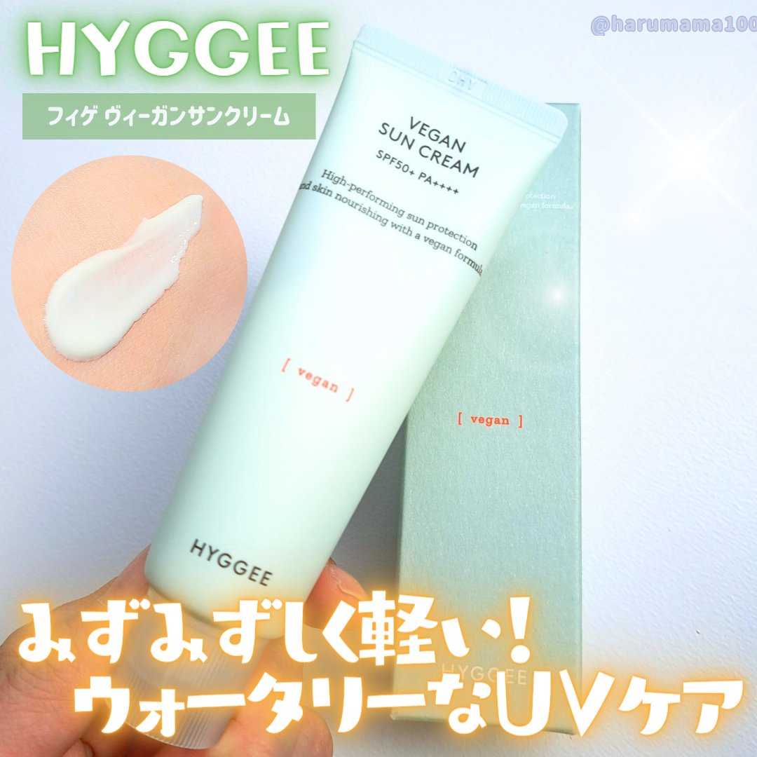 HYGGEEフィゲヴィーガンサンクリーム 今年の夏☀️沢山使った日焼け止め👍腕に沢山塗って、使い切りました!☑︎SPF50+PA++++☑︎ヴィーガン成分が入った水分たっぷりのサンケア✨☑︎軽くてべたつかないテクスチャー☑︎しっかりUVカット...