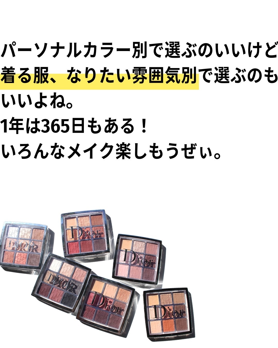 ディオール バックステージ アイ パレット ナチュラルから濃密なルックまで、ロングウェアな美しい仕上がりを叶えるマストハブアイテム 超おすすめ!!イエベにピッタリのカラー001!! やわらかさと深みを兼ね備えたブラウン グラデーションにコーラルのアクセントをきかせたパレット。ナチュラルな目元から幸福感あふれるコーラル ルックまで様々なアイメイクが自由自在♪