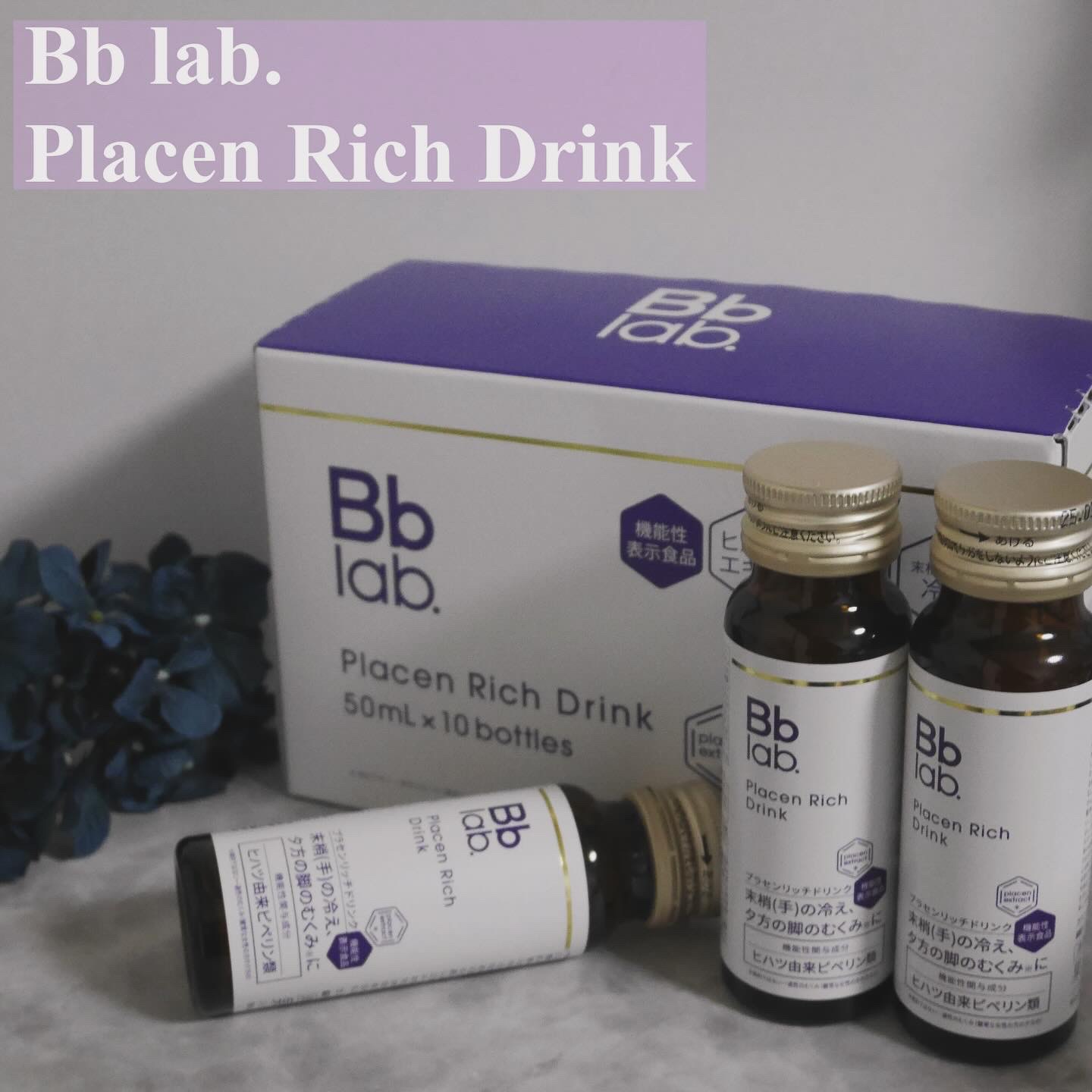 - 【機能性表示食品】 手先の冷え*1や、むくみ*2対策に。 手軽に飲める機能性表示食品(ドリンク)。 機能性関与成分「ヒハツ由来ピペリン類」のほか、カラダにうれしい多彩な成分、さらにBb lab. が誇る女性のための成分「プラセンタエキス」を35,000mg*3も配合。ノンカフェインで、すっきりと飲みやすい梅味。 【機能性関与成分 : ヒハツ由来ピペリン類 120μg】 ヒハツ由来ピペリン類は、冷えにより低下した血流( 末梢血流) を正常に整え、冷えによる末梢( 手) の皮膚表面温度の低下を軽減する機能があることが報告されています。また、脚のむくみが気になる健常な女性の夕方の脚のむくみ( 病的ではない一過性のむくみ) を軽減する機能があることが報告されています。 【カラダにうれしい成分】 ■プラセンタエキス(エキス換算)35,000mg ■低分子コラーゲン(コラーゲンペプチド) ■低分子ヒアルロン酸(ヒアルロン酸) ■エラスチングルコシルセラミド(セラミド含有パイナップル果実エキス) ■ヨクイニンエキス(ハトムギエキス) ■ローヤルゼリーエキス(脱蛋白ローヤルゼリー) ■ビタミンB群 ■高麗人参エキス(オタネニンジンエキス) *1 冷えによる末梢(手)の皮膚表面温度の低下 *2 健常な女性の夕方の脚のむくみ(病的ではない一過性のむくみ) *3エキス換算 ※画像はイメージです