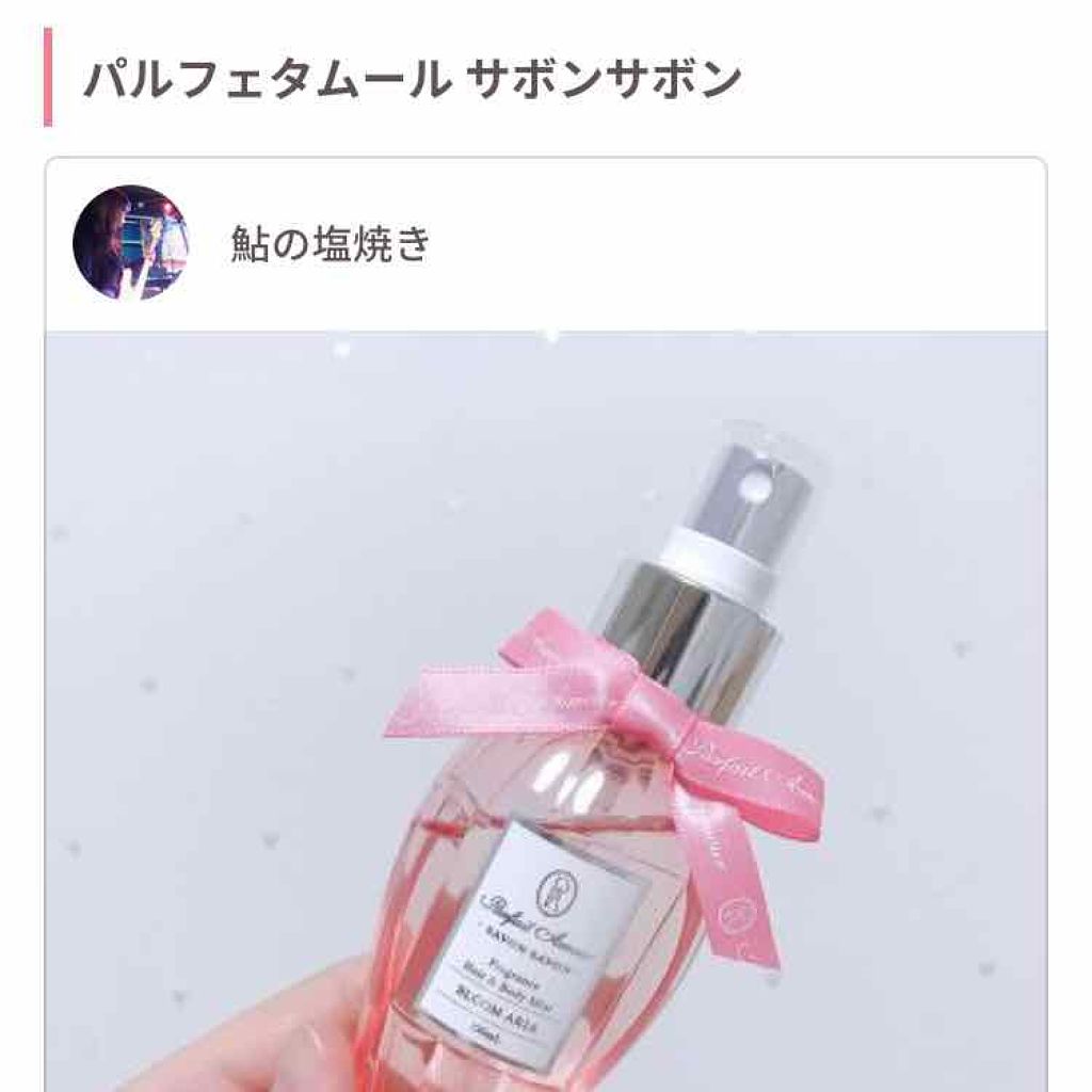 香りつける系のいつも使ってるものです💭・パルフェタムールサボンサボンヘア&ボディミストとファブリックミストどちらもブルームアリアの香りです🌸・香りのサンプルを見ると必ず嗅ぐほどこういうのが大好きで、そのなかでも今1番好きな香り!ミストが割とど...