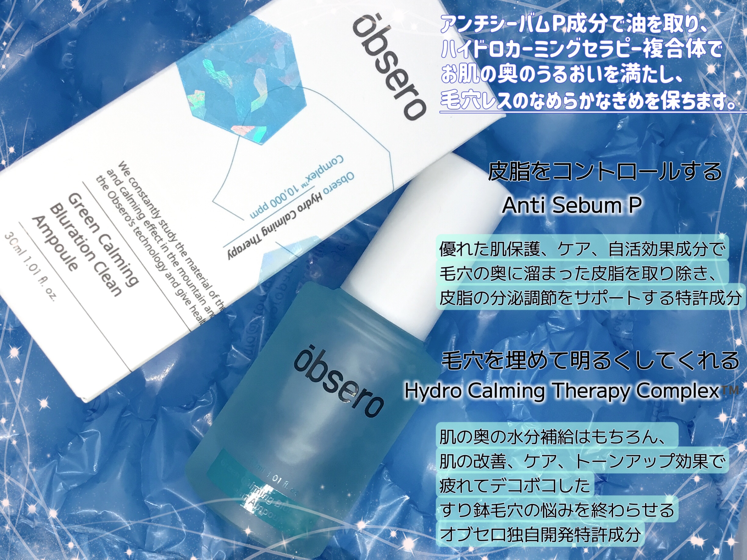 obsero グリーンカーミングブルーレーションクリーンアンプル |