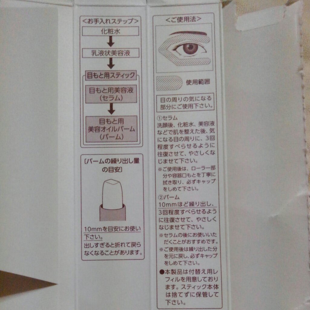 - <セラム(レフィル)> 水、BG、ペンチレングリコール、グリセリン、パンテチン、ワイルドタイムエキス、ウメ果実エキス、メマツヨイグサ種子エキス、ミリストイルサクシニルアテロコラーゲン、タウリン、リシンHCl、アラニン、ヒスチジンHCl、アルギニン、セリン、プロリン、グルタミン酸、トレオニン、バリン、ロイシン、グリシン、アラントイン、イソロイシン、フェニルアラニン、セラミドNG、セラミドNP、セラミドAP、セイヨウハッカ葉エキス、ナツメ果実エキス、クダモノトケイソウ果実エキス、インドナガコショウ果実エキス、ソルビトール発酵多糖、水添レシチン、スクワラン、トリイソステアリン酸ポリグリセリル-2、(アクリル酸ヒドロキシエチル/アクリロイルジメチルタウリンNa)コポリマー、ポリソルベート60、クエン酸、ペンテト酸5Na、クエン酸Na、リン酸2Na、リン酸K、フェノキシエタノール、メチルパラベン <バーム (レフィル)> トリエチルヘキサノイン、水添ポリデセン、水添ポリイソブテン、リンゴ酸ジイソステアリル、ワセリン、合成ワックス、ヒドロキシステアリン酸エチルヘキシル、ラウロイルグルタミン酸ジ(フィトステリル/オクチルドデシル)、(エチレン/プロピレン)コポリマー、ケイ酸(Na/K/Al)、キャンデリラロウ、メタクリル酸メチルクロスポリマー、ラウロイルグルタミン酸ジ(オクチルドデシル/フィトステリル/ベヘニル)、パンテチン、ワイルドタイムエキス、ウメ果実エキス、メマツヨイグサ種子エキス、ミリストイルサクシニルアテロコラーゲン、タウリン、リシンHCl、アラニン、ヒスチジンHCl、アルギニン、セリン、プロリン、グルタミン酸、トレオニン、バリン、ロイシン、グリシン、アラントイン、イソロイシン、フェニルアラニン、セラミドNG、セラミドNP、セラミドAP、スクワラン、ブドウ種子油、アストロカリウムムルムル種子脂、グルコシルヘスペリジン、シリカ、酸化チタン、グリチルレチン酸ステアリル、トコフェロール、BG、リン酸2Na、リン酸K、水、フェノキシエタノール