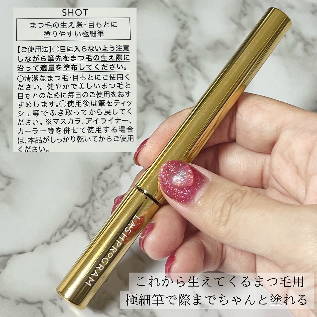 - [公式オンラインストア限定商品] いつまでも誇れる美しいまつ毛のためのまつ毛美容プログラム まつ毛の生え際と毛先で2本のアプリケーターを使い分けて、健やか&のびやかな印象のまつ毛に整える、まつ毛美容液セット。 ■内容:ショット〈まつ毛・目もと美容液〉 1.7mL/アプローチ〈まつ毛美容液〉 4.0mL