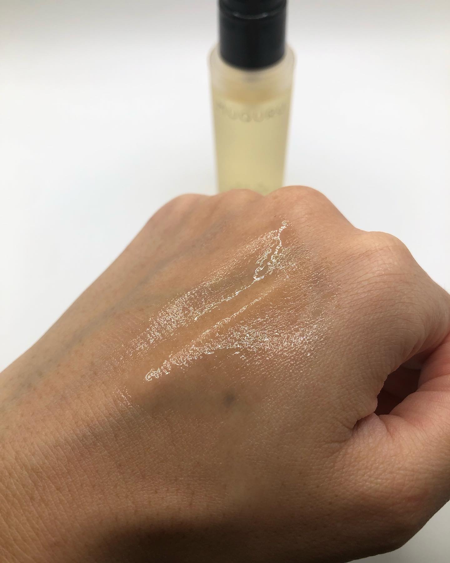 使うタイミングは洗顔後なので、導入美容液のような位置です。 オイルですがとろみがありかつさらりとしたテクスチャーでべたつきがないです。 天然の脂肪酸とアミノ酸を原料にした、水にも油にも溶ける両親媒性オイルを使用しているから、美容水とオイルが分離しないんだそうです!
