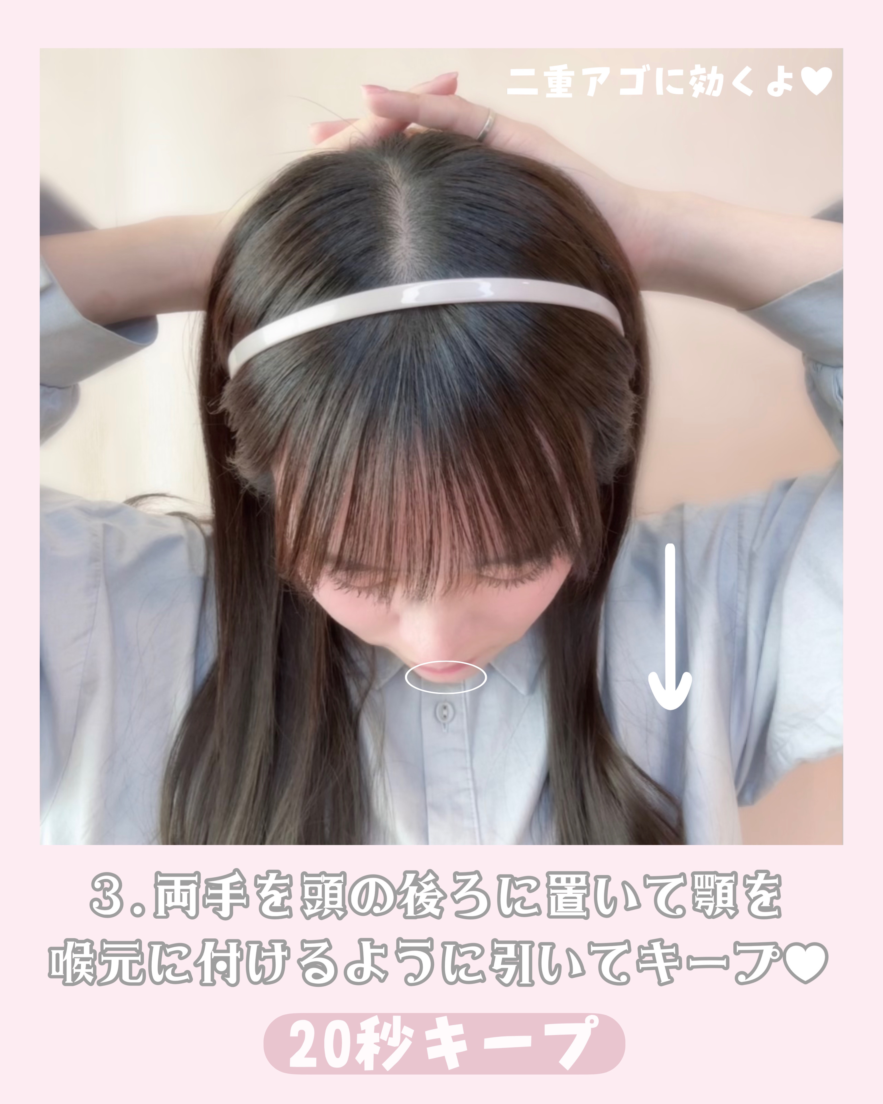 耳下、首の筋、フェイスライン~顎下をグイグイする 二枚目の写真の印をつけているところを順番にしていきます。 ほぐす まず1つ目。耳輪ゴム掛け。 うお体操 うお体操はただ「う」「お」と顔を動かすだけなんですが、頬肉の抹消、顎肉の抹消に繋がります。