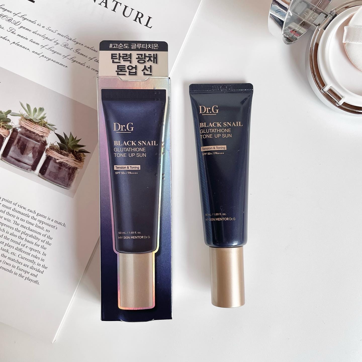 グルタチオンやナイアシンアミドが入った 化粧下地としても使える日焼け止め! 乾燥しにくくしっとりとしたテクスチャ ベタつかずピタっと密着✨ ブラックスネイルグルタチオントーンアップサン