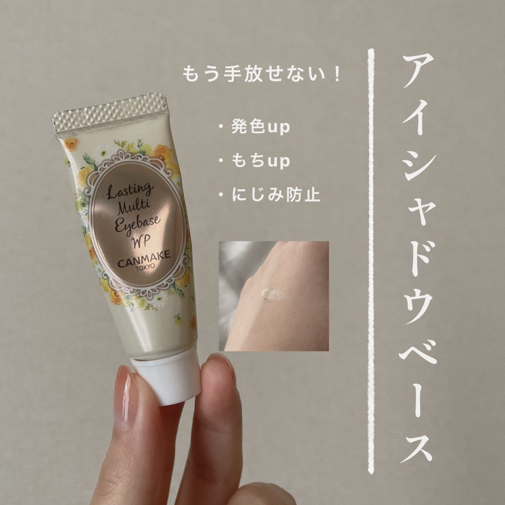 こんにちは🖤今日は私のアイメイクには欠かせんキャンメイクのラスティングマルチアイベースWPをレビューします✨ラスティングマルチアイベースWPは2色あって私は02のクリームイエロー💛価格も¥550と安くてこれがあるのとないのとでは全然違う😳✨ア...