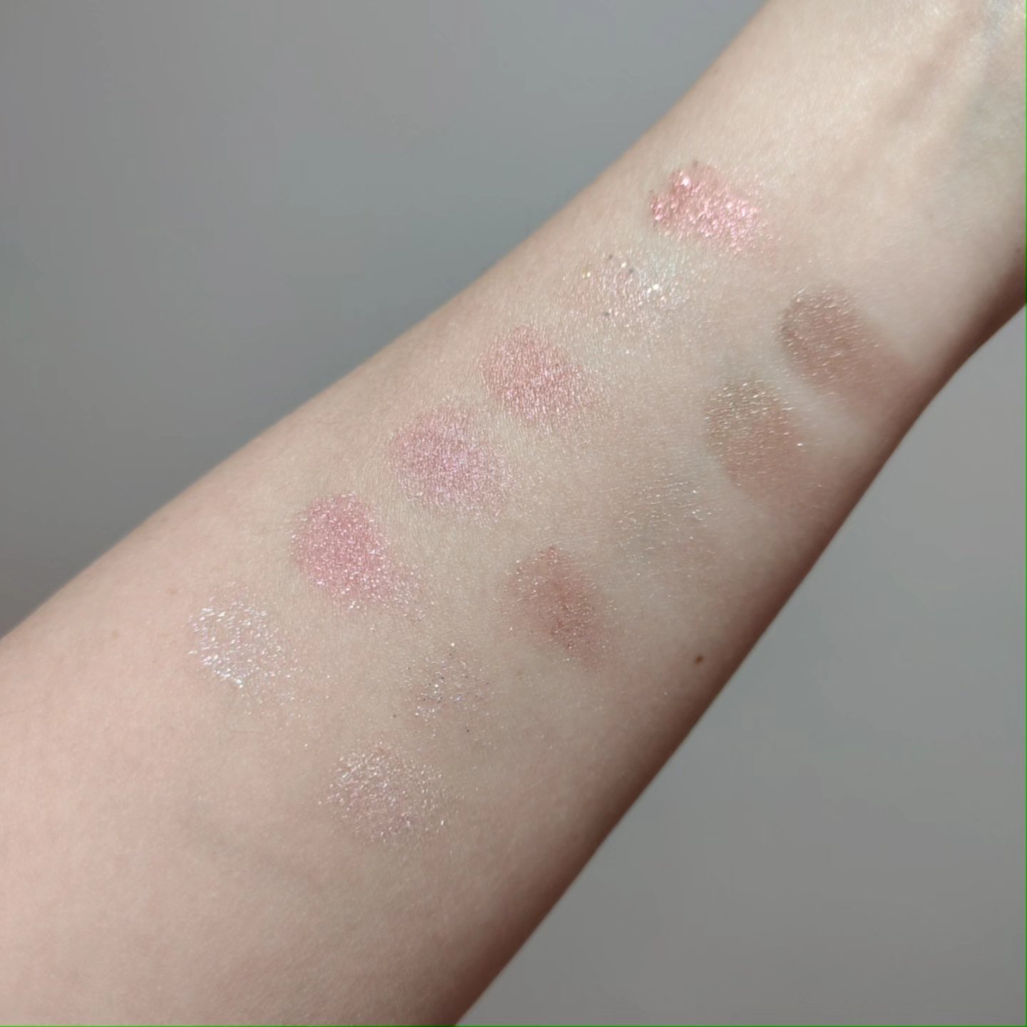 ホリデーシーズンらしい煌めきに一目惚れ✨特に気になった2色を買ってみました♡お値段も1つ1100円と、手に取りやすい🤭 アイカラー、チーク、リップにとマルチに使えるのも🙆💘 まだメイクには使っていないので耐久性とかは未知ですが…可愛すぎて取り急ぎスウォッチをば!♡スティック系って苦手意識あるのだけど買っちゃった!w
